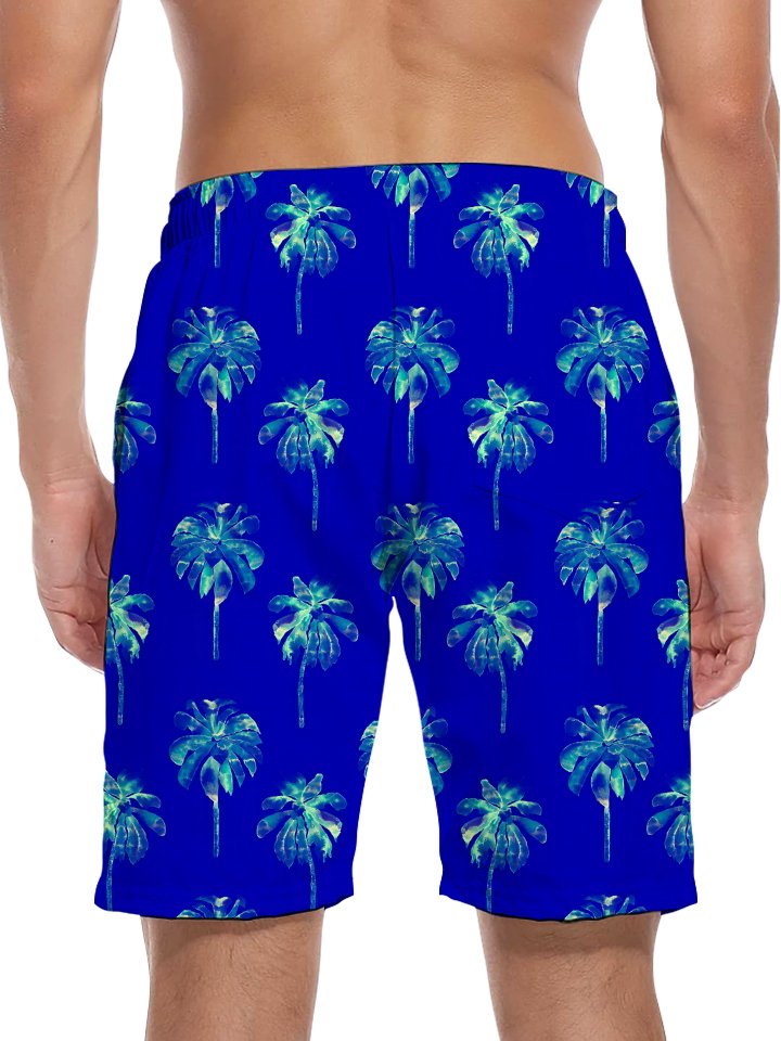 Alohadaddy Vacation Hawaii Palm Trees Arrangement Print Art Elastic Elastic Waist Drawstring Pockets Elastic Oversized Shorts Board Shorts