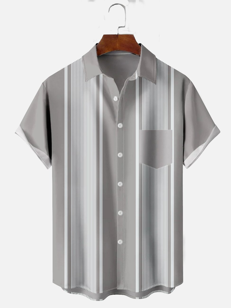 Chemises de bowling décontractées en coton mélangé gris uni Alohadaddy grande taille