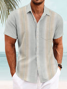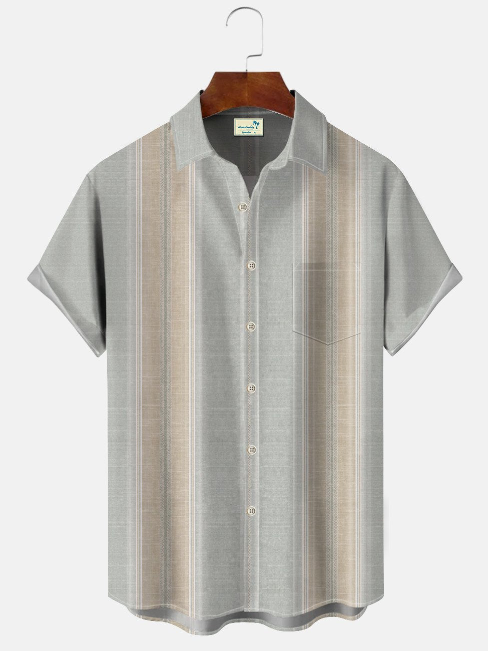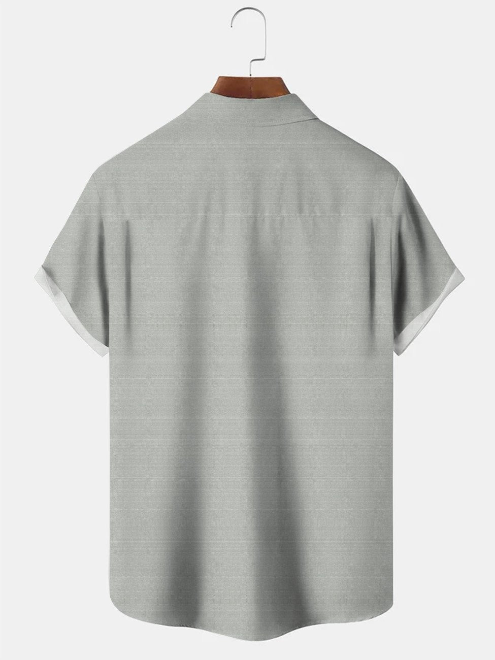 Alohadaddy Summer Retro National Pattern Men's 50S Bowling Casual Commuter Button Pocket Short Sleeve Shirt