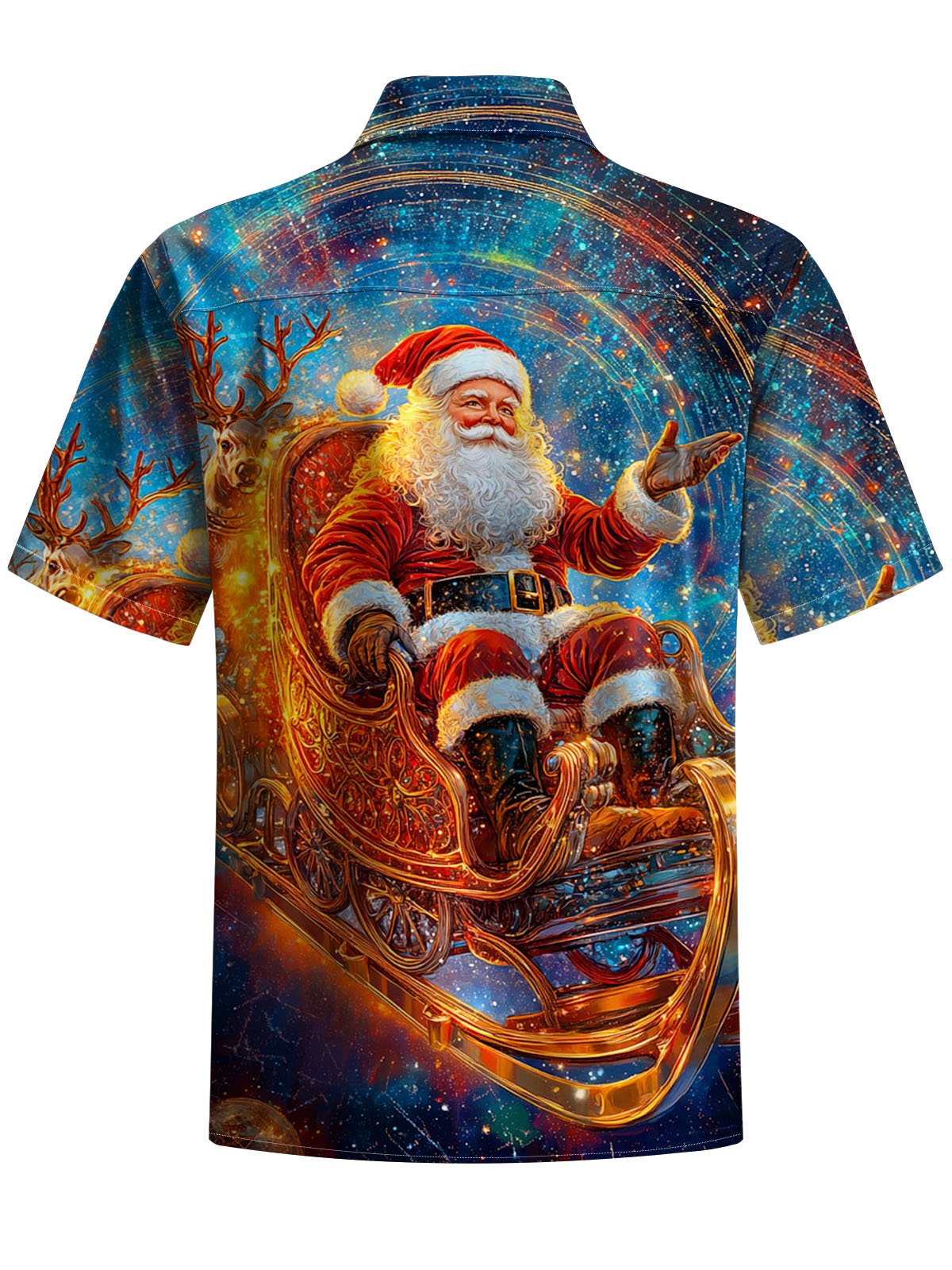 Alohadaddy® Santa Claus Print Art Pocket Stretch Men's Short Sleeve Shirt Big & Tall