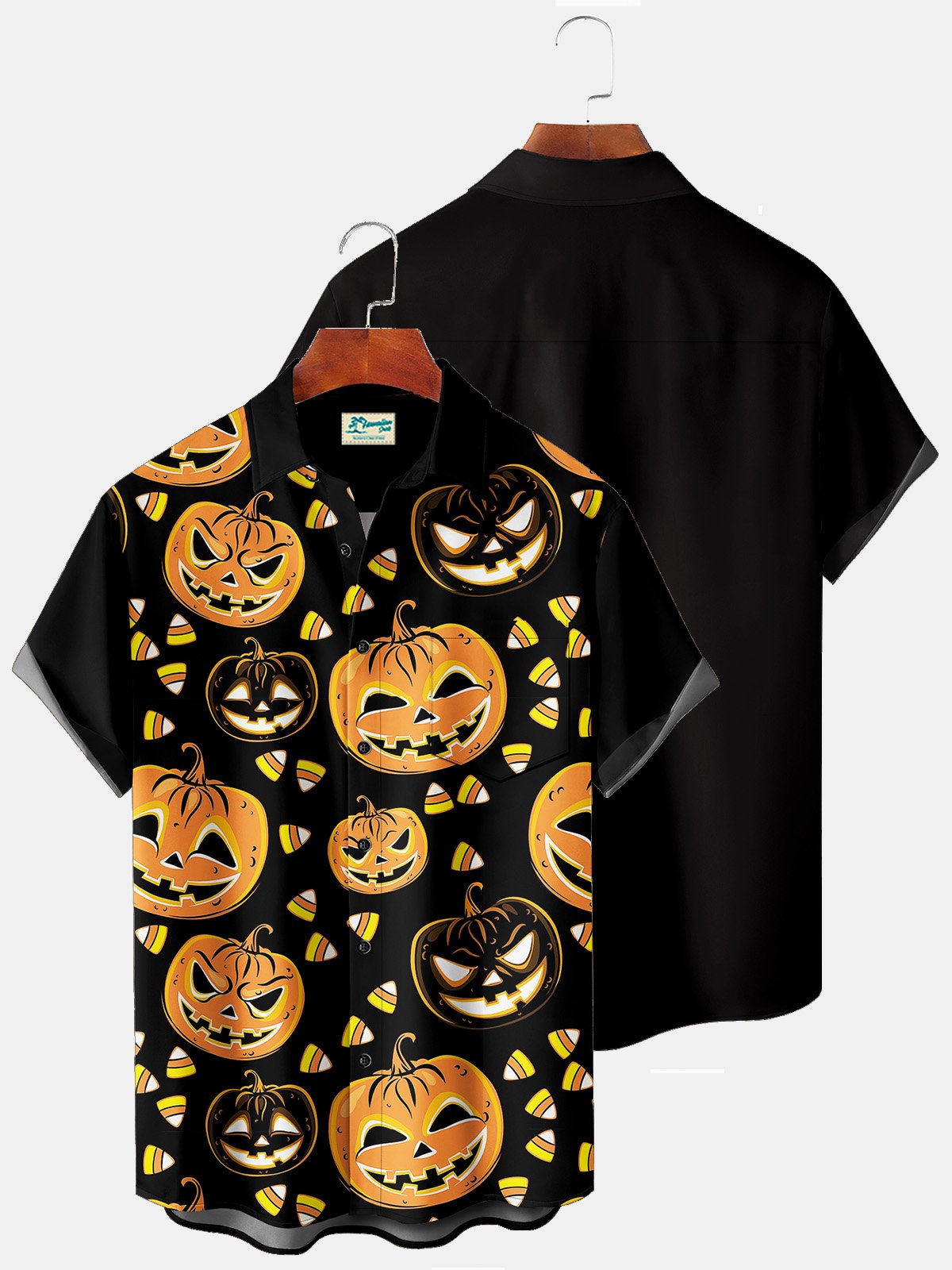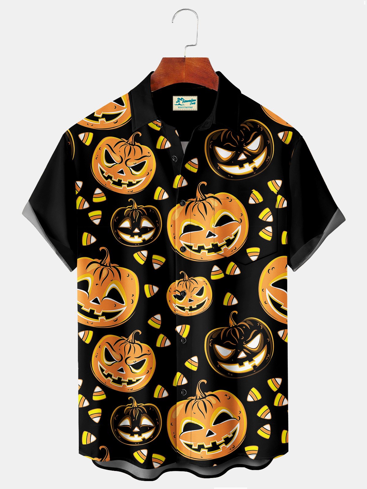Chemises hawaïennes décontractées pour hommes d'Alohadaddy pour Halloween, motif dessin animé, citrouille, crâne, bonbons, extensibles, surdimensionnées, chemises Aloha