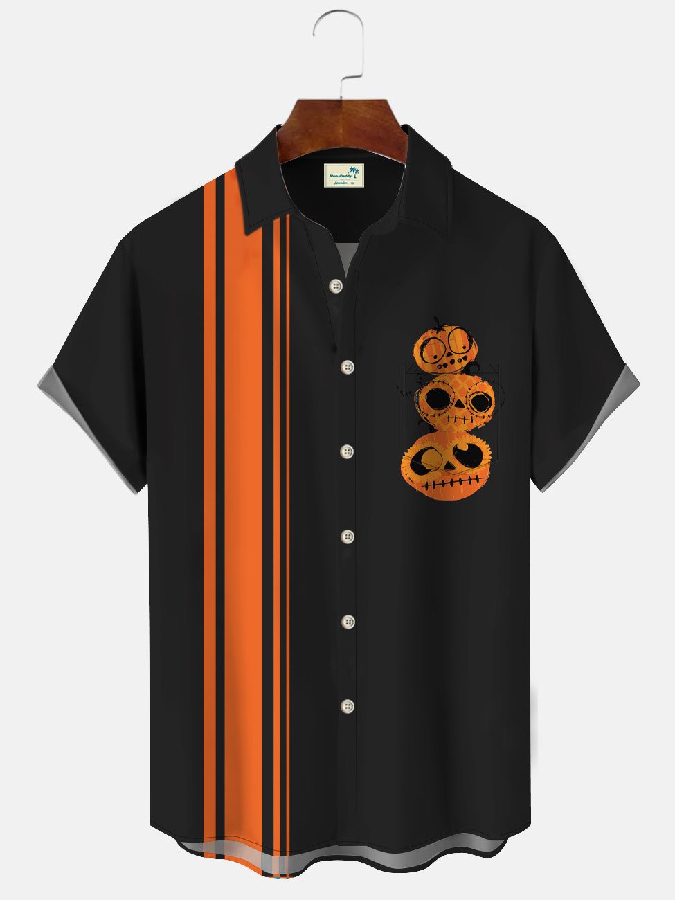 Chemise décontractée à manches courtes avec poche boutonnée pour homme Alohadaddy Halloween Pumpkin