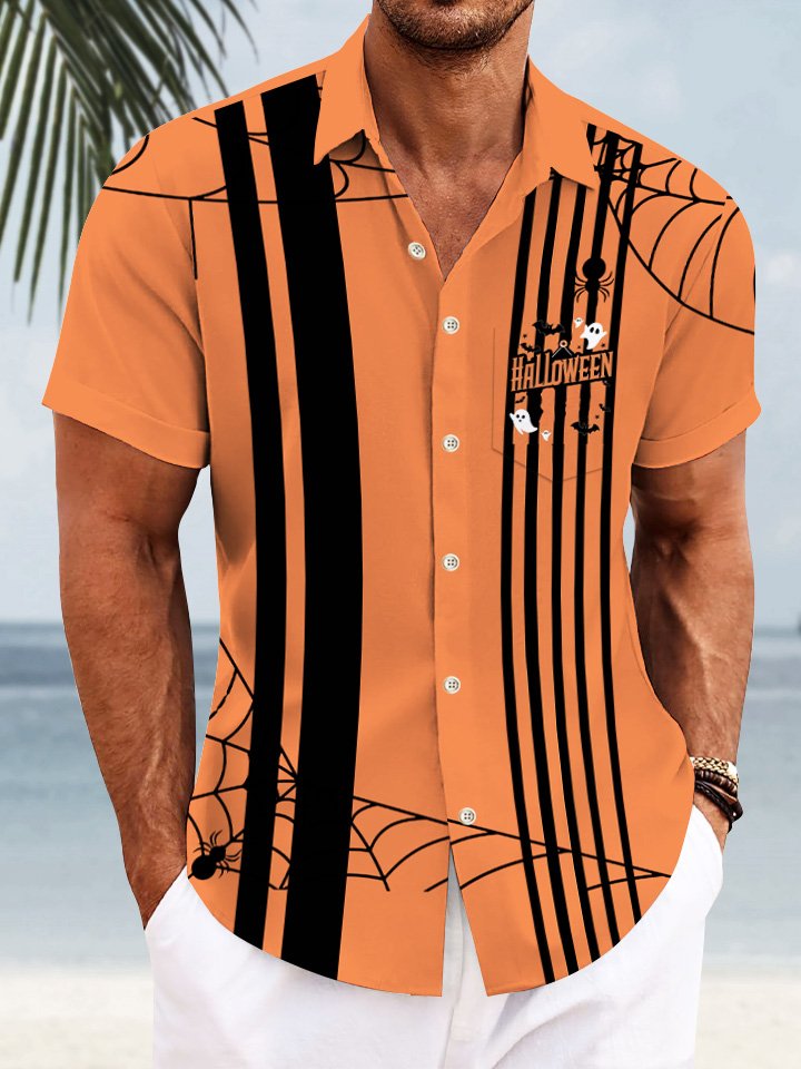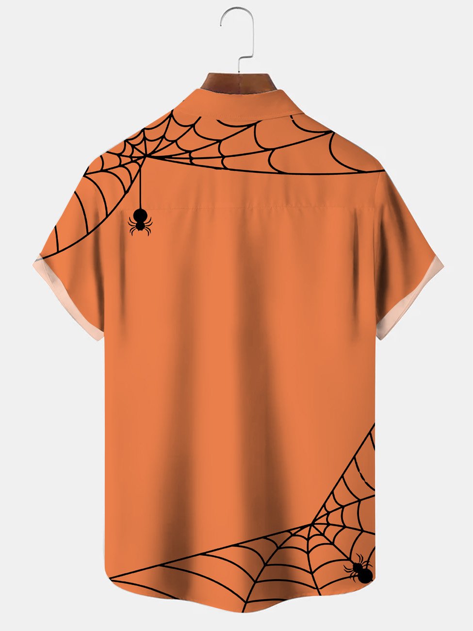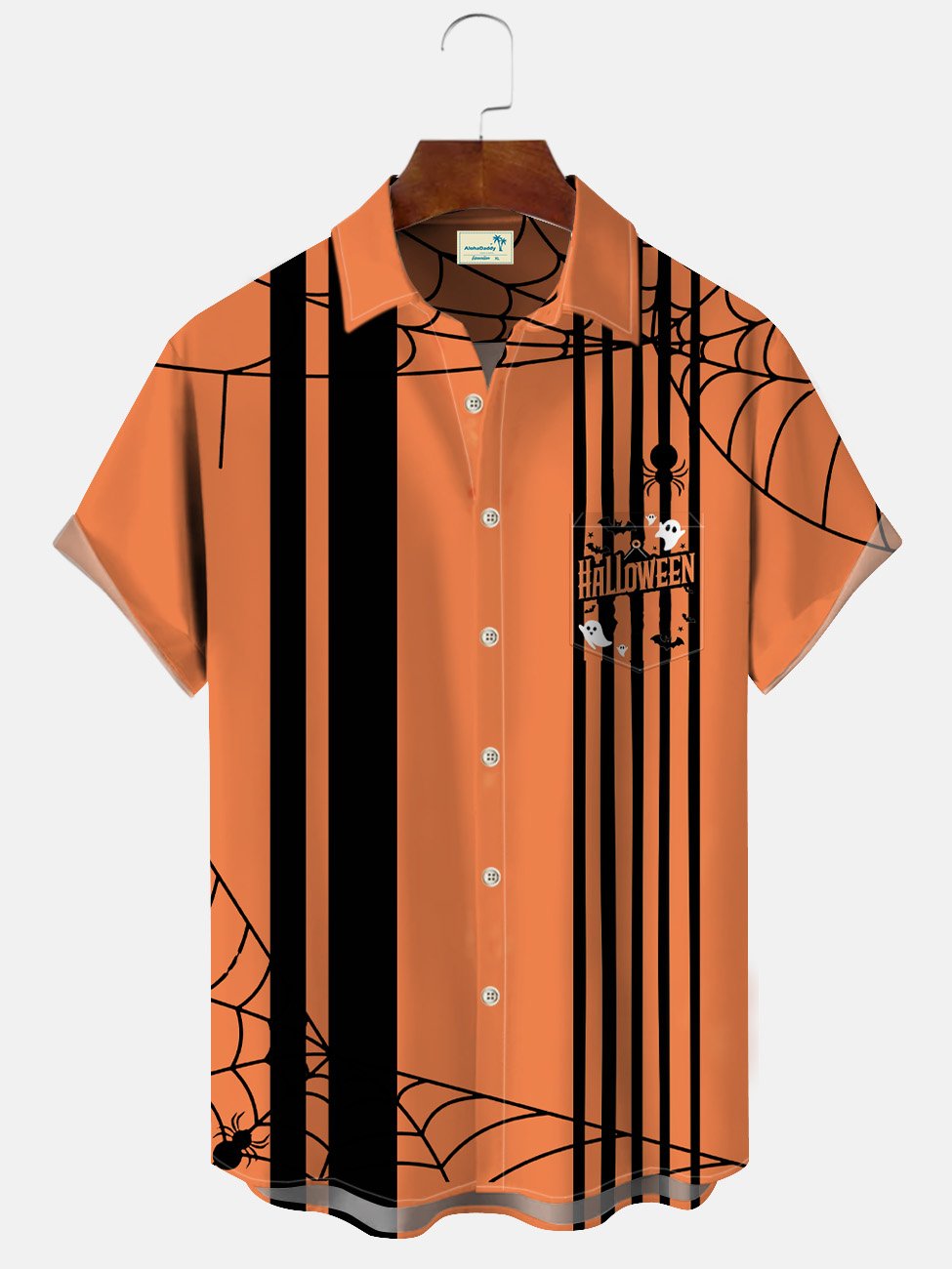 Alohadaddy Halloween Spider Men's Pocket Button Casual 50S Bowling Commuter Short Sleeve Shirt