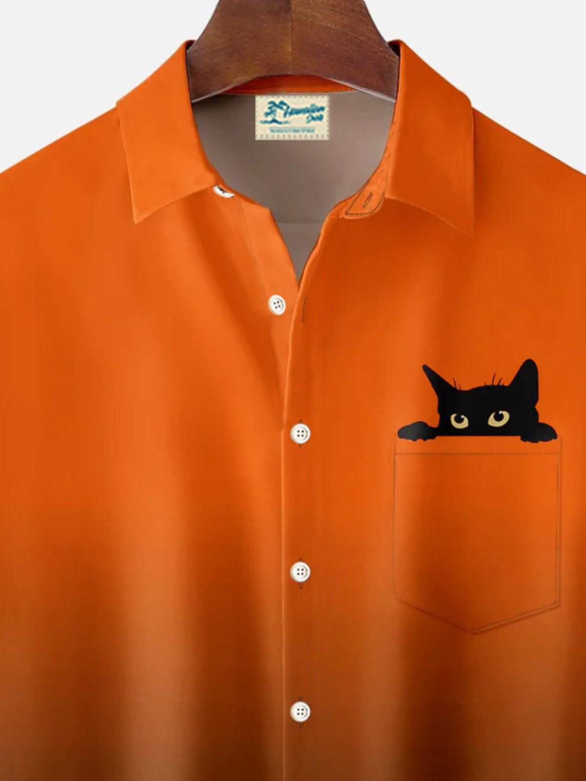 Alohadaddy Retro Halloween Cat Gradient 3D Digital Print Men's Button Pocket Short Sleeve Shirt Big & Tall