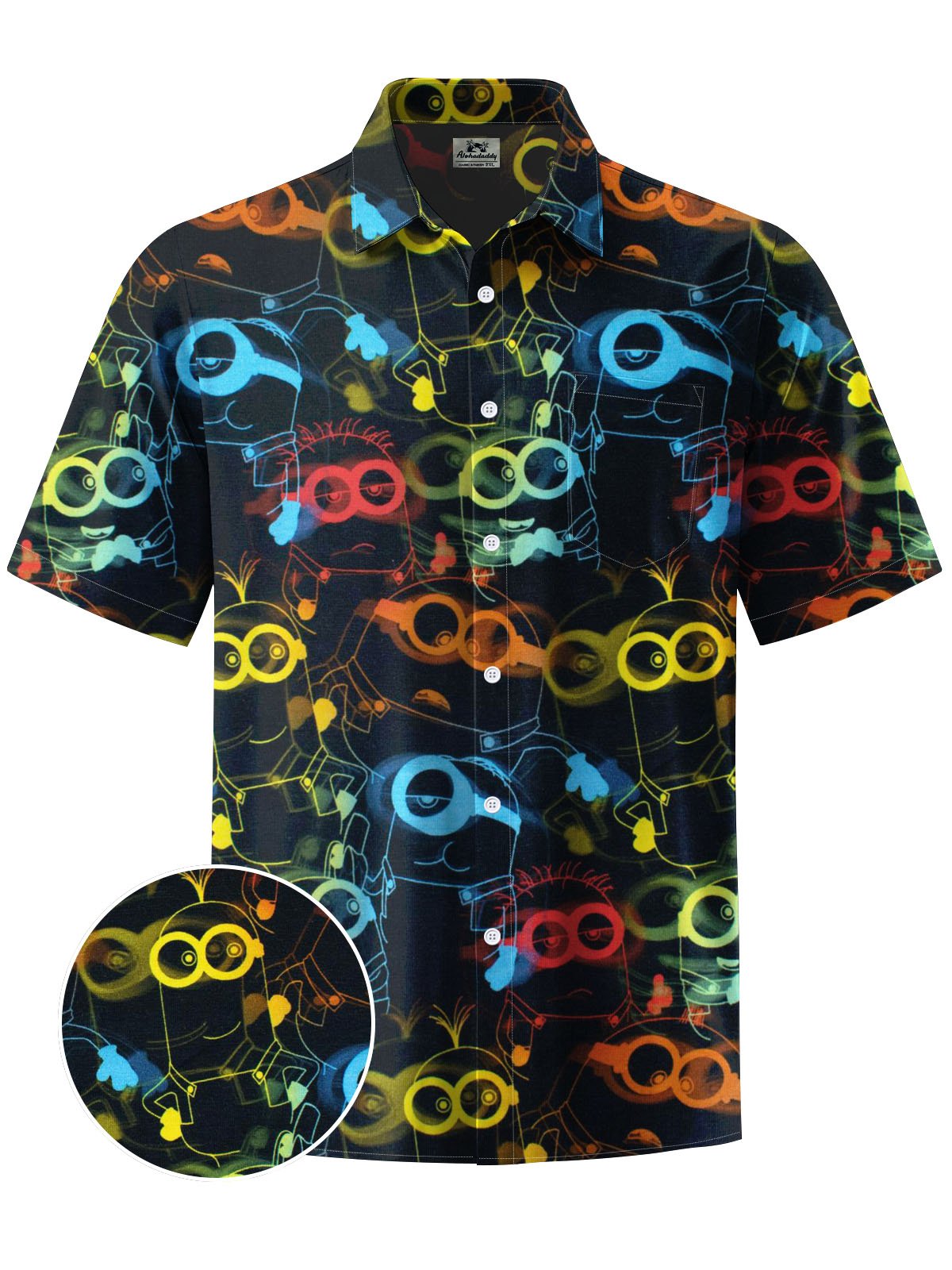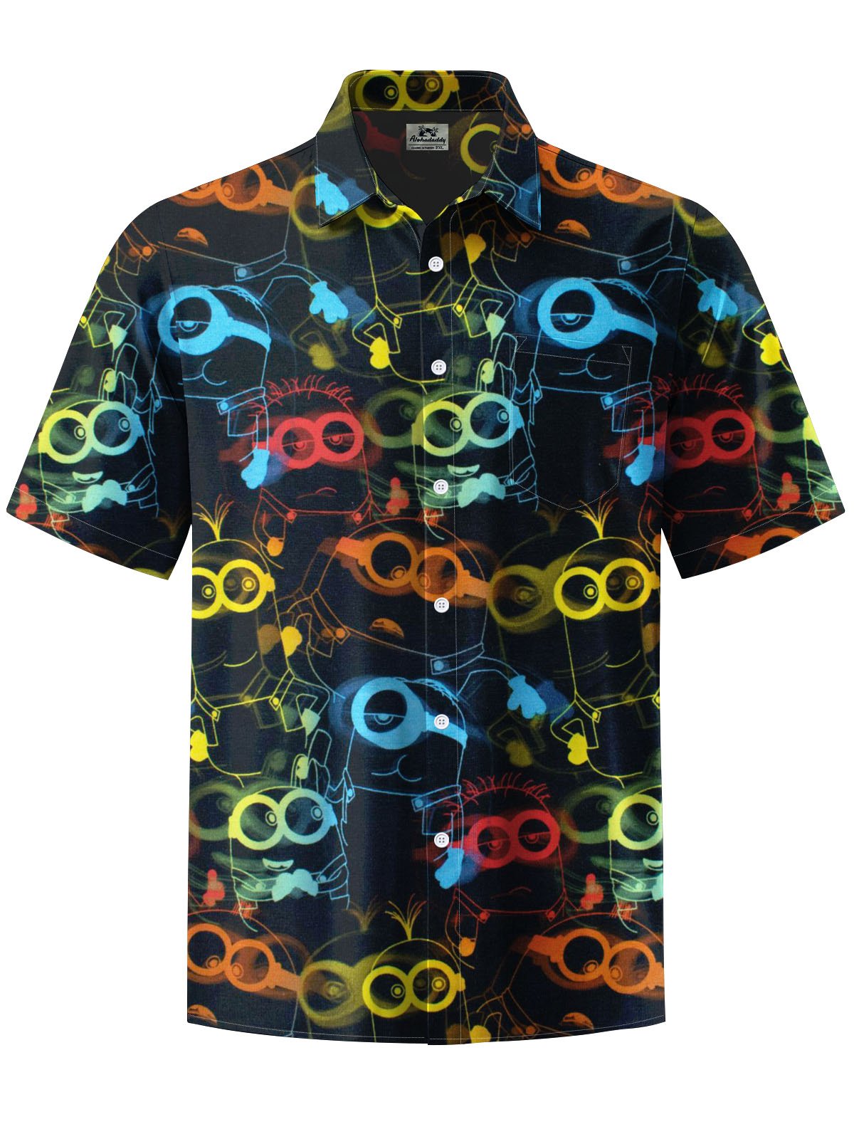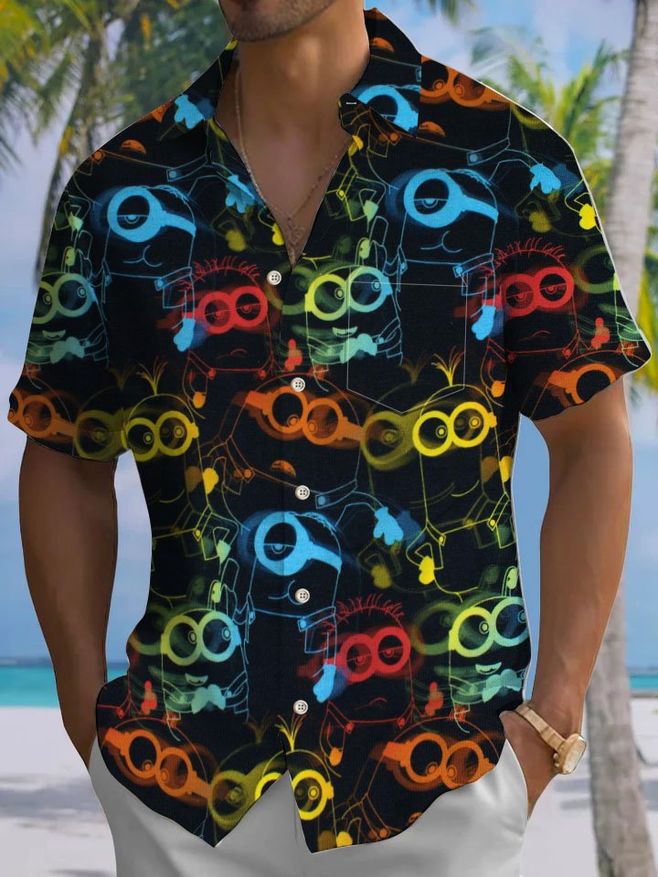 Alohadaddy® Casual Cartoon Print Chest Pocket Men's Short Sleeve Shirt Big & Tall