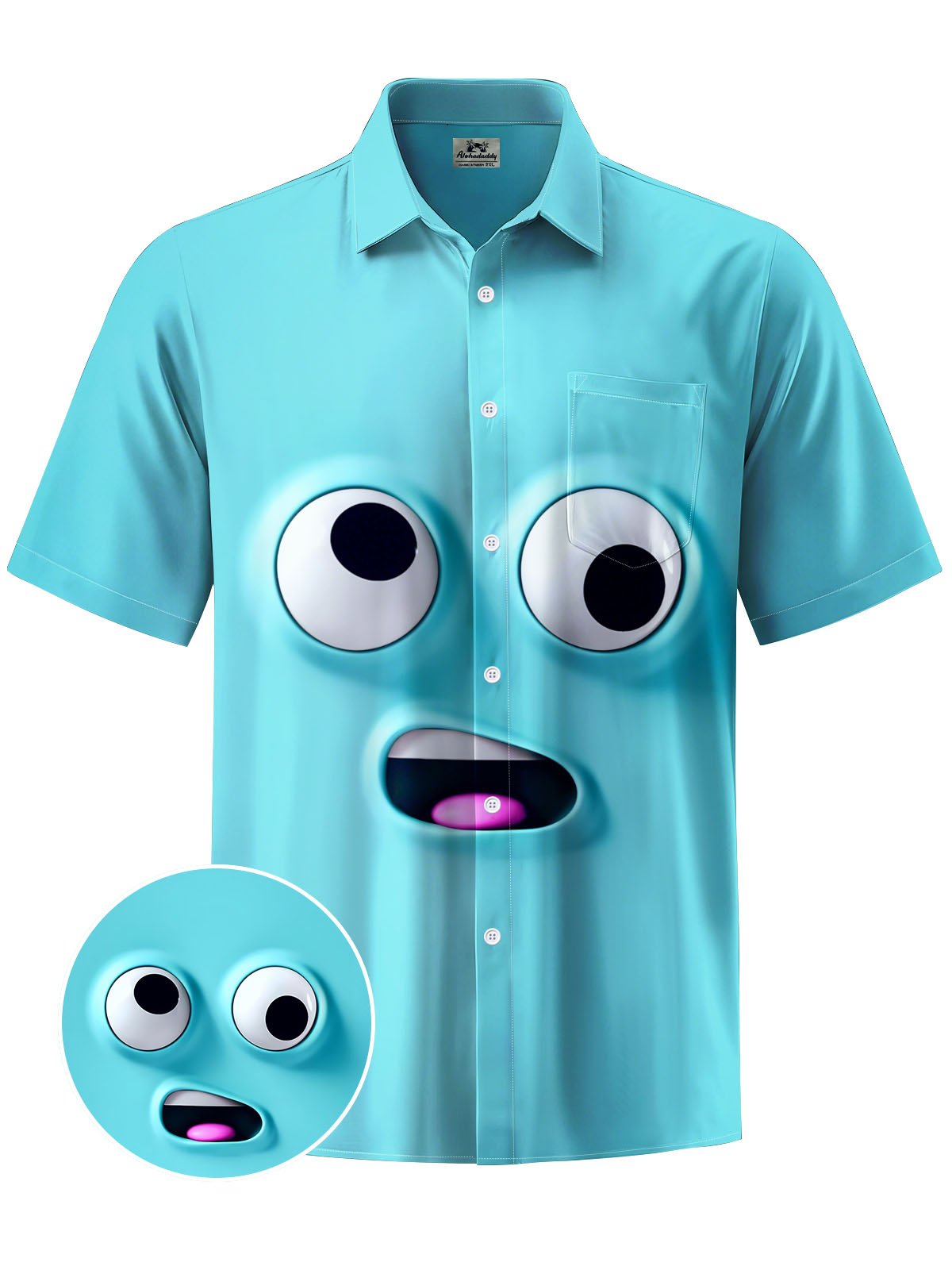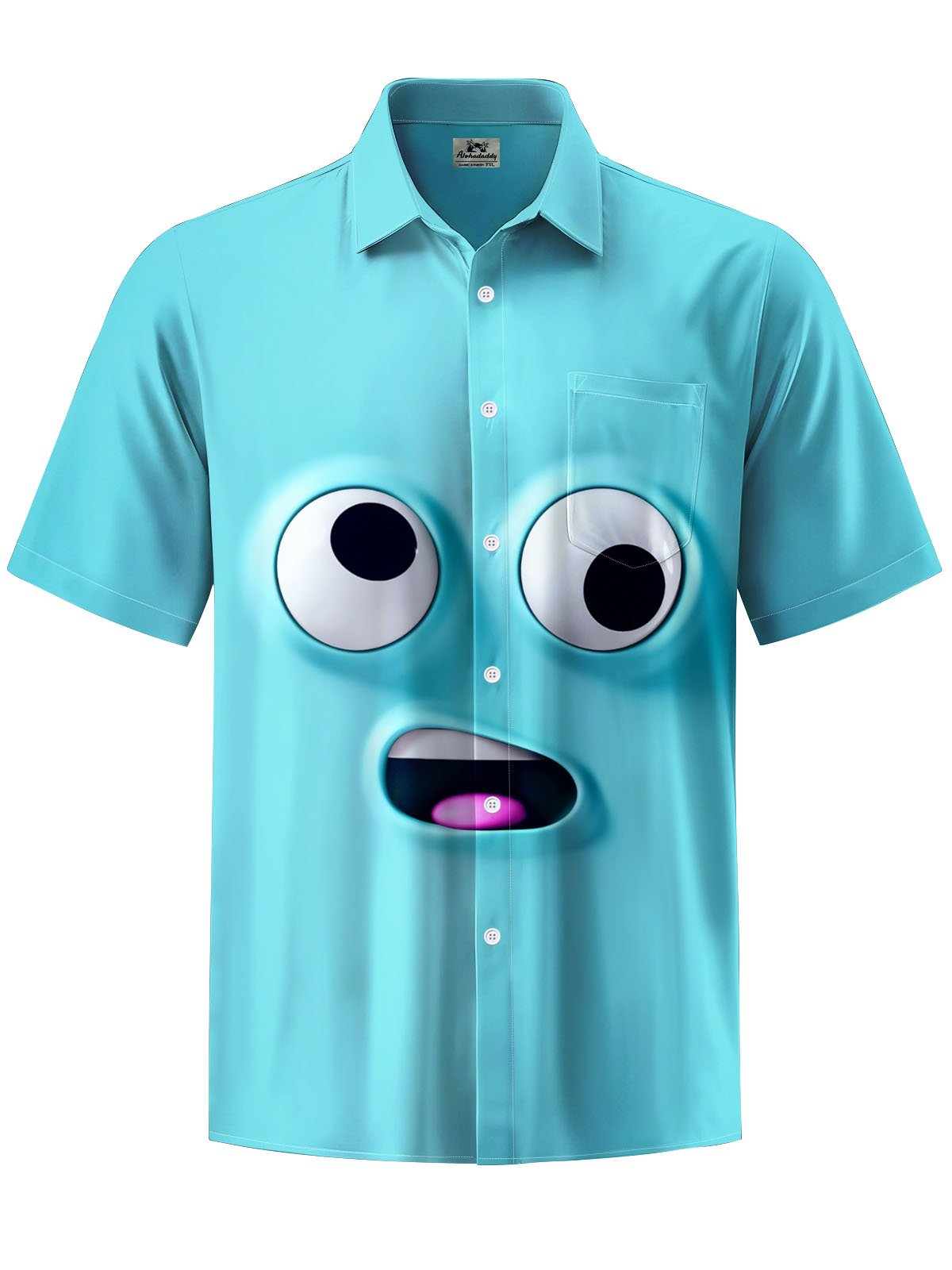 Alohadaddy® Casual Cartoon Print Chest Pocket Men's Short Sleeve Shirt Big & Tall