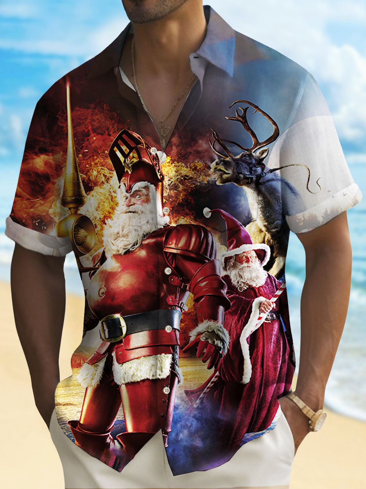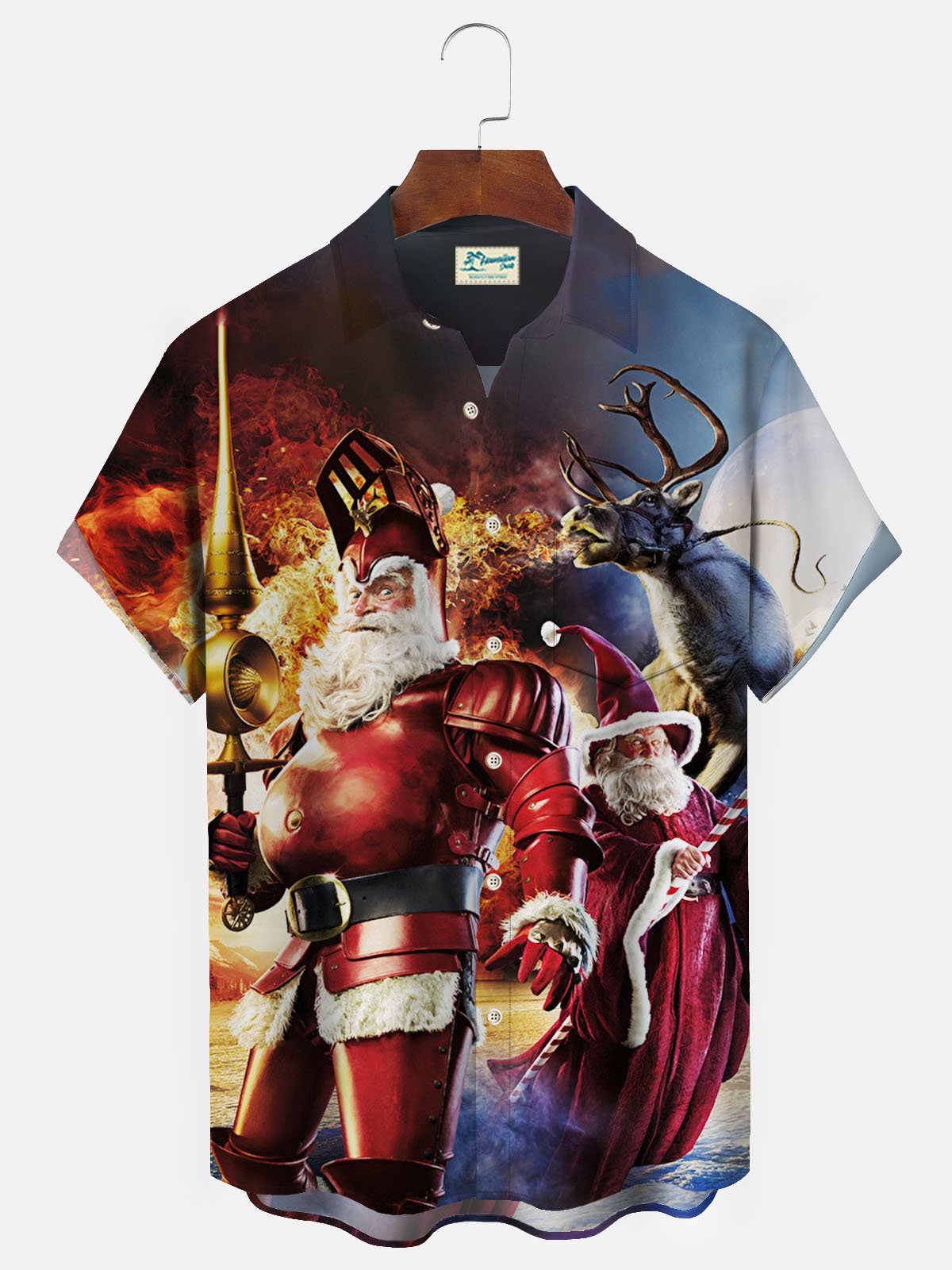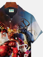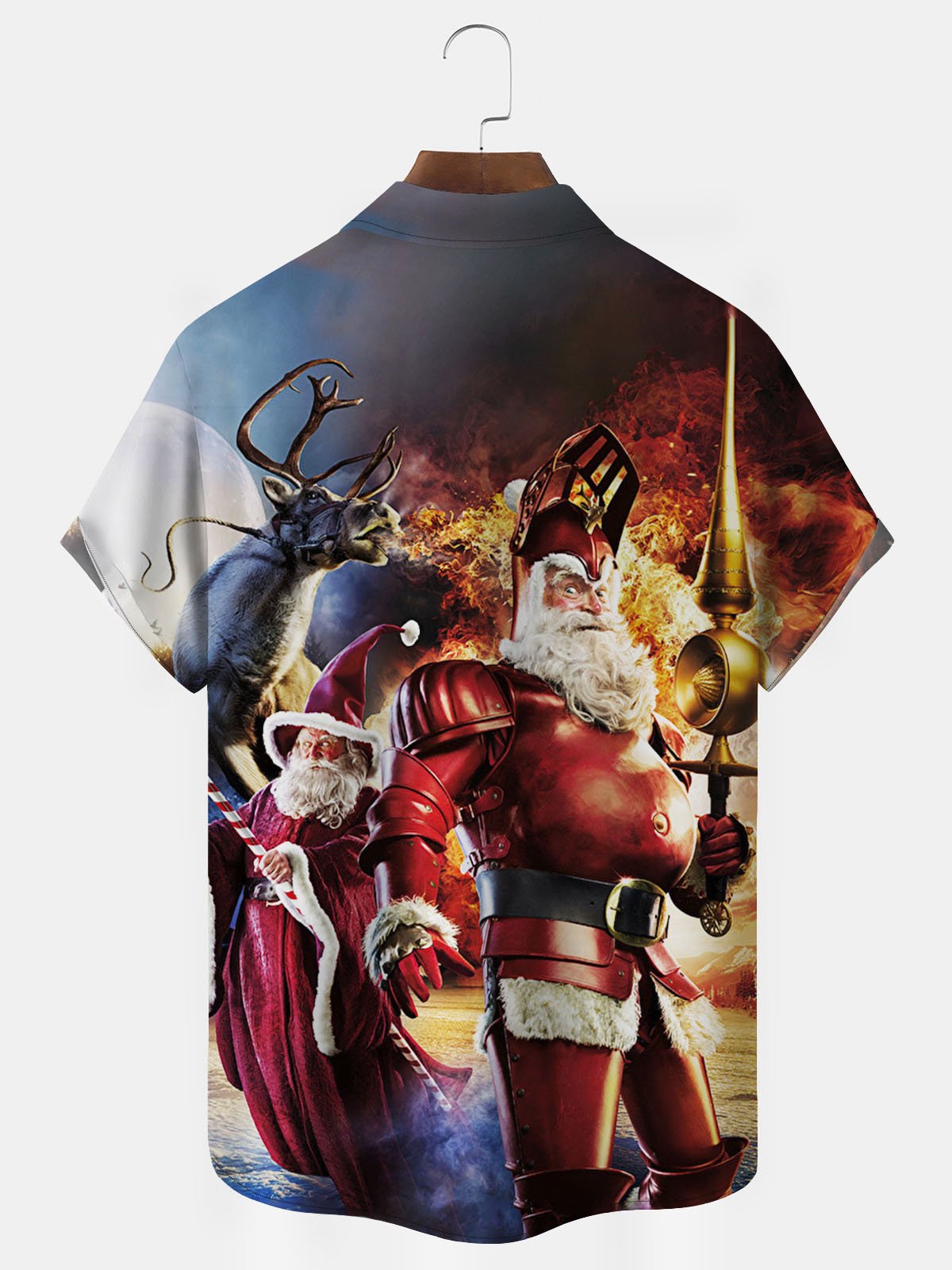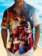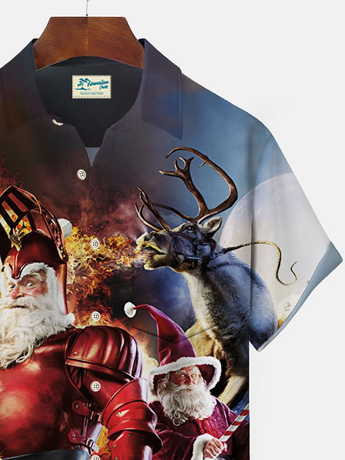 Chemises hawaïennes bleues pour hommes Alohadaddy Christmas Holiday Game Santa Claus Stretch Plus Size Fun Cartoon Aloha Camp Chemises boutonnées à poche