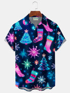 Alohadaddy® Christmas Gradient Print Men's Button Pocket Short Sleeve Shirt Big & Tall
