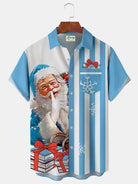 Alohadaddy® Christmas Santa Claus Print Men's Button Pocket Short Sleeve Shirt Big & Tall