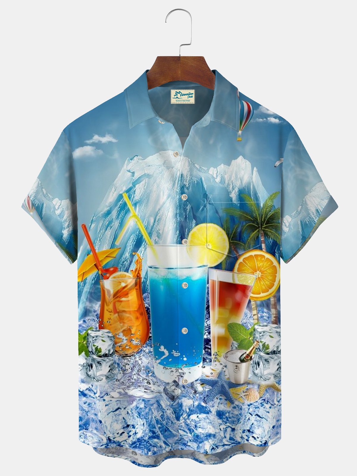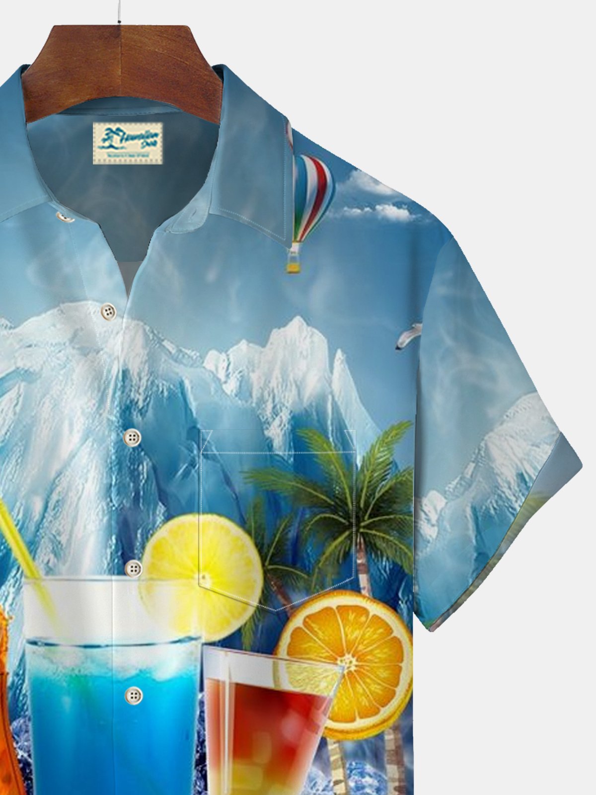 Chemise hawaïenne surdimensionnée à manches courtes avec poches pour homme, motif cocktail de bière Alohadaddy