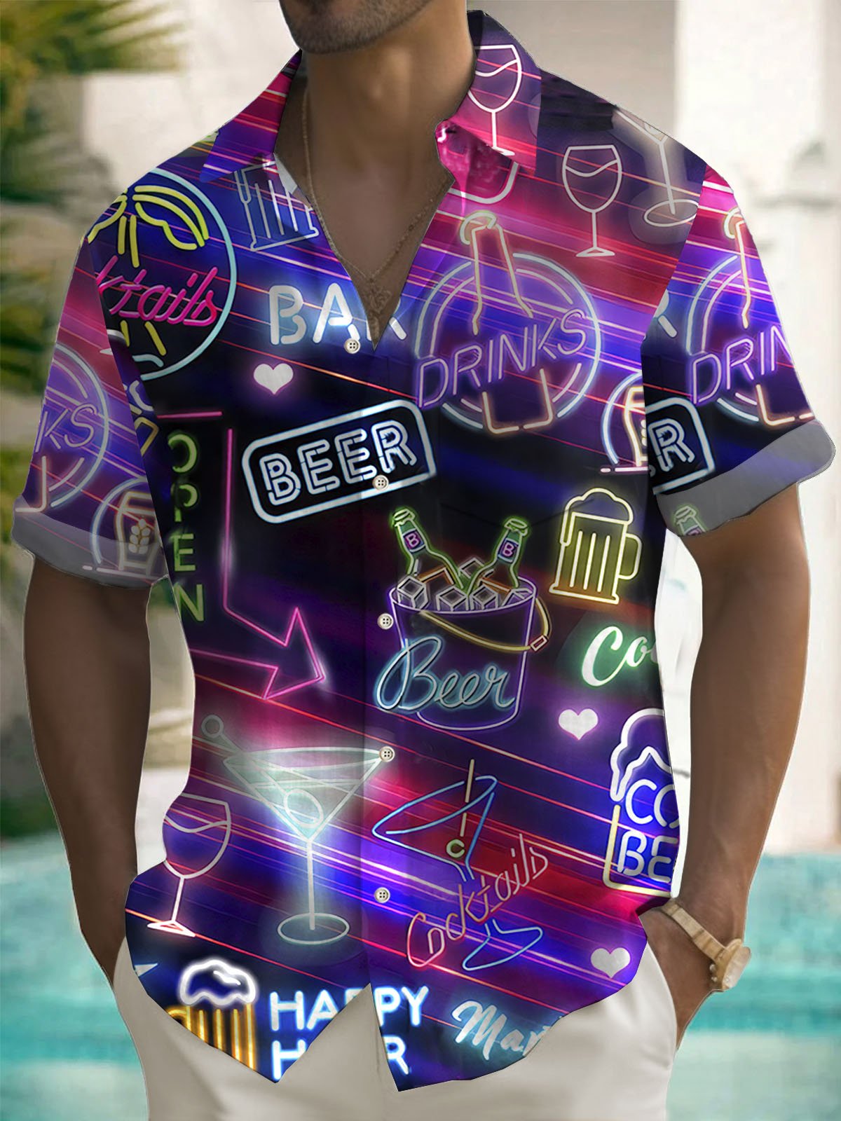 Chemise à manches courtes et poches boutonnées pour homme avec imprimé cocktail ombré hawaïen Alohadaddy