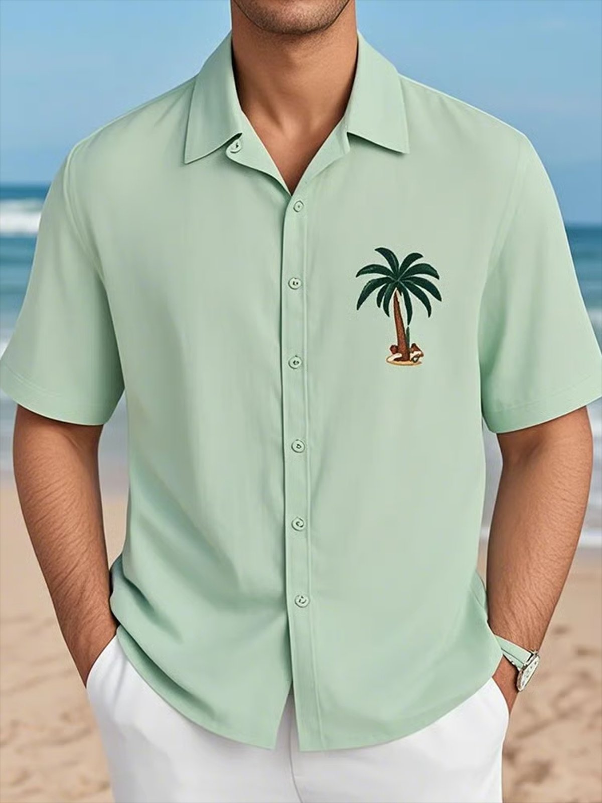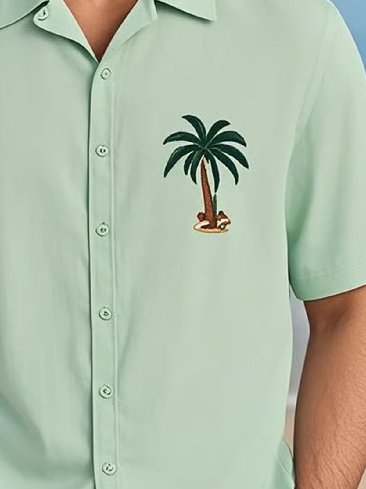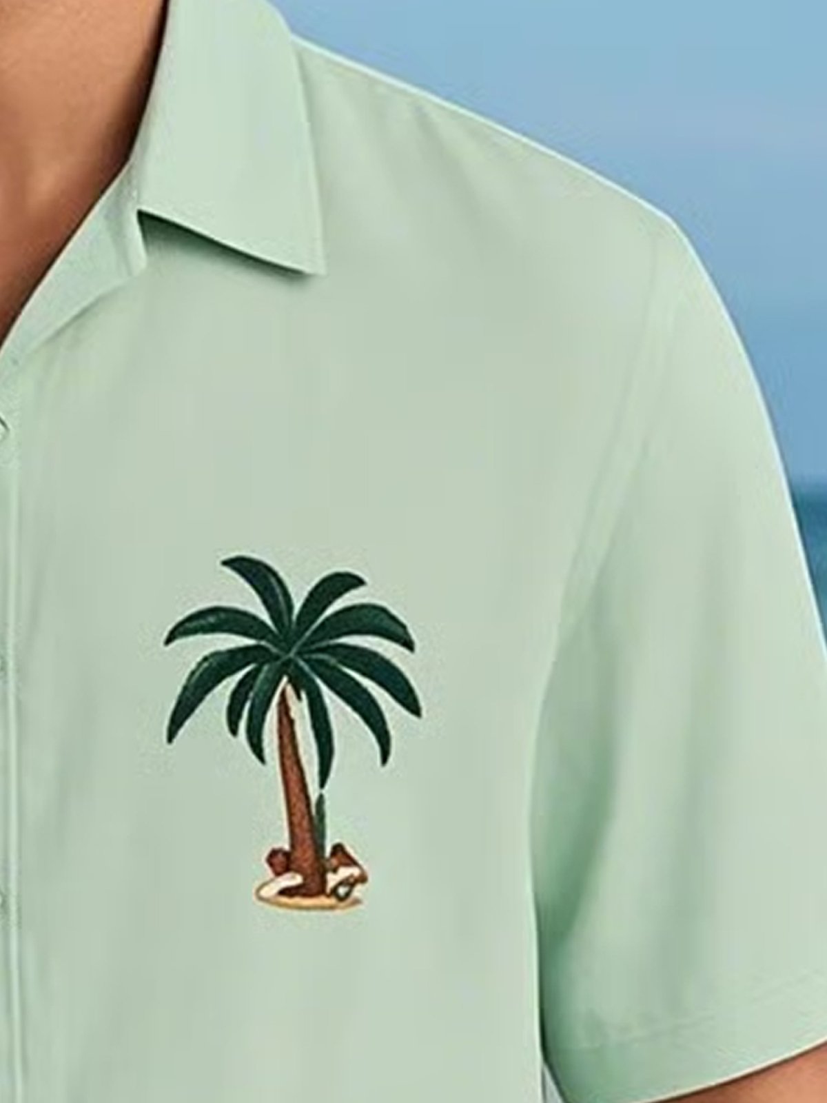 Alohadaddy® Basic Solid Coconut Tree Print Men's Pocket Shirt