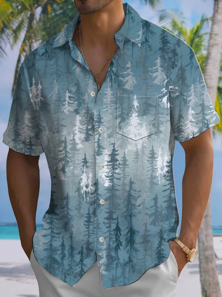Alohadaddy® Casual Forest Art Print Chest Pocket Mens Short Sleeve Shirt Big & Tall