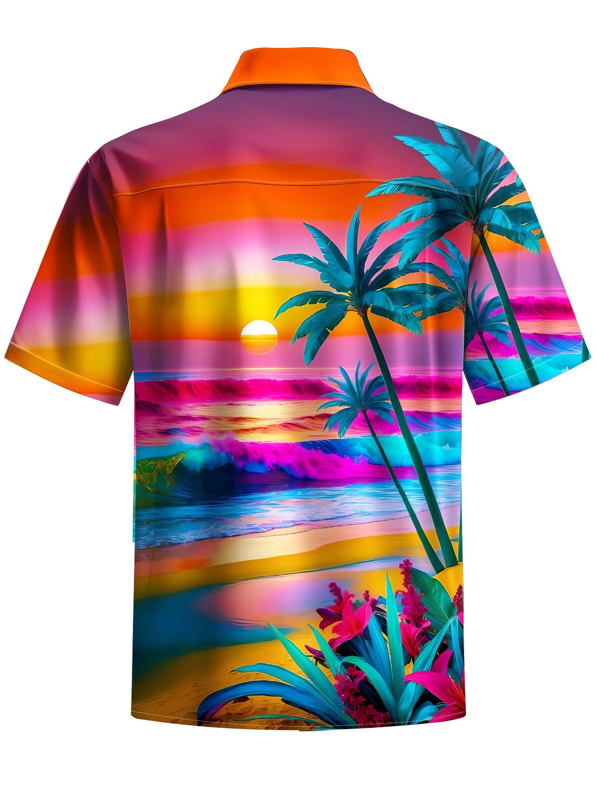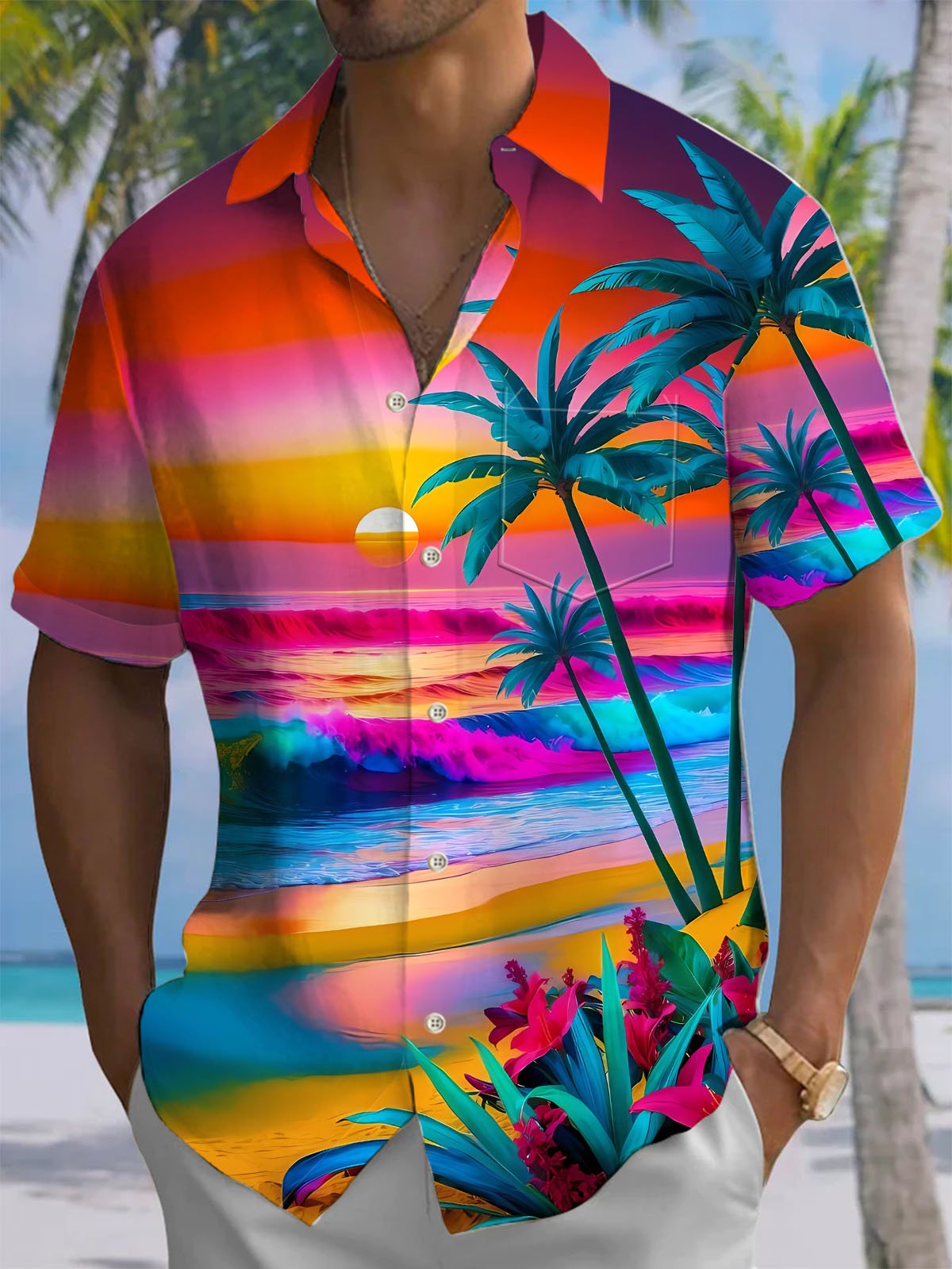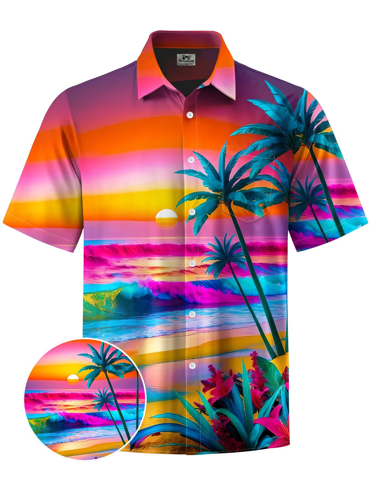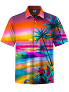 Alohadaddy® Hawaii Coconut Tree Beach Print Chest Pocket Men's Short Sleeve Shirt Big & Tall