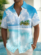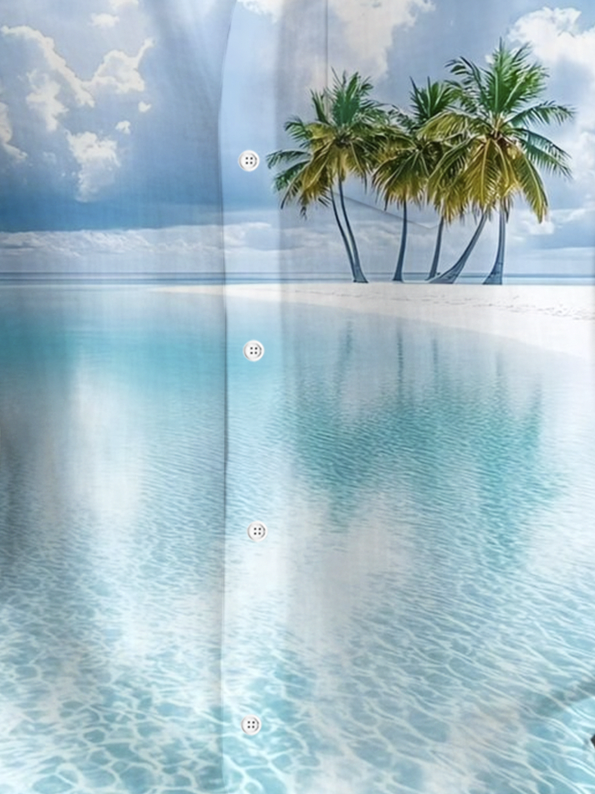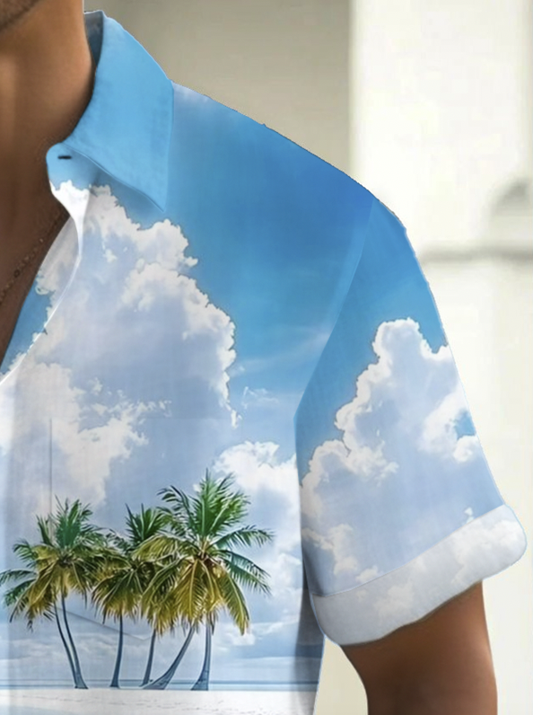Alohadaddy® Hawaiian Beach Palm Tree Print Men's Chest Pocket Stretch Long Sleeve Shirt Big & Tall