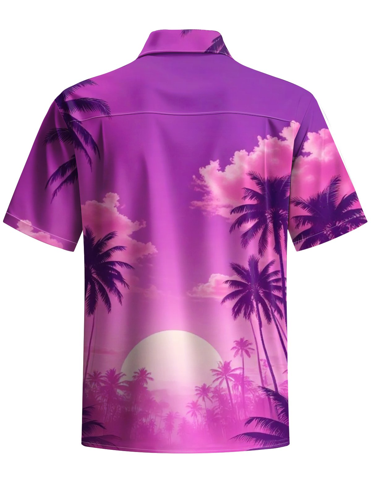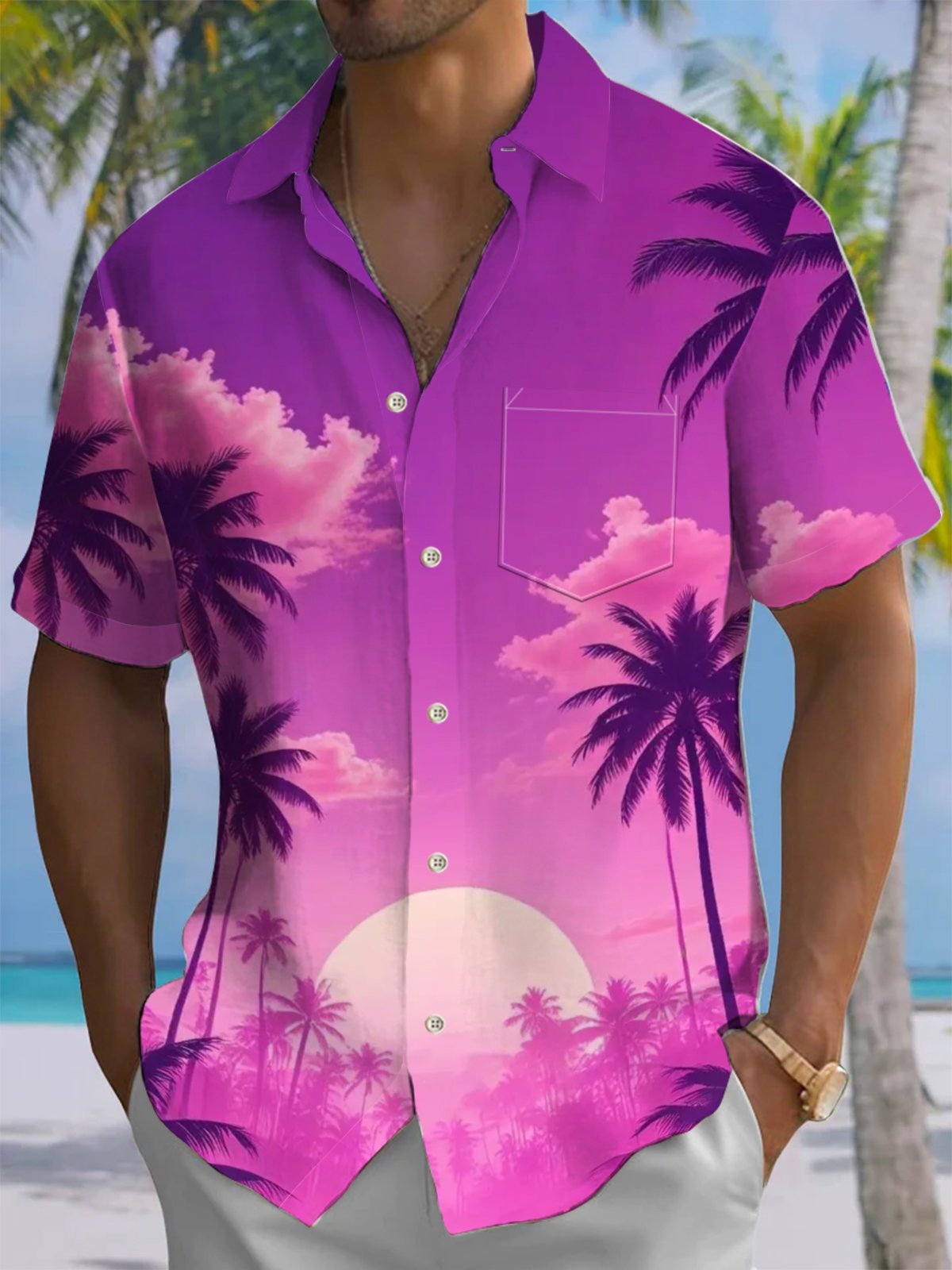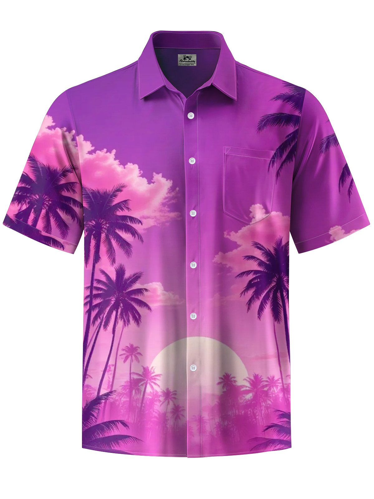 Alohadaddy® Hawaiian Palm Tree Art Print Chest Pocket Men's Short Sleeve Shirt Big & Tall