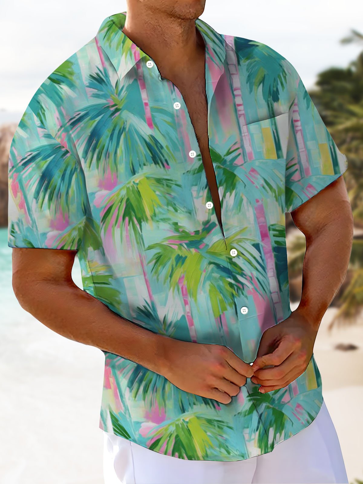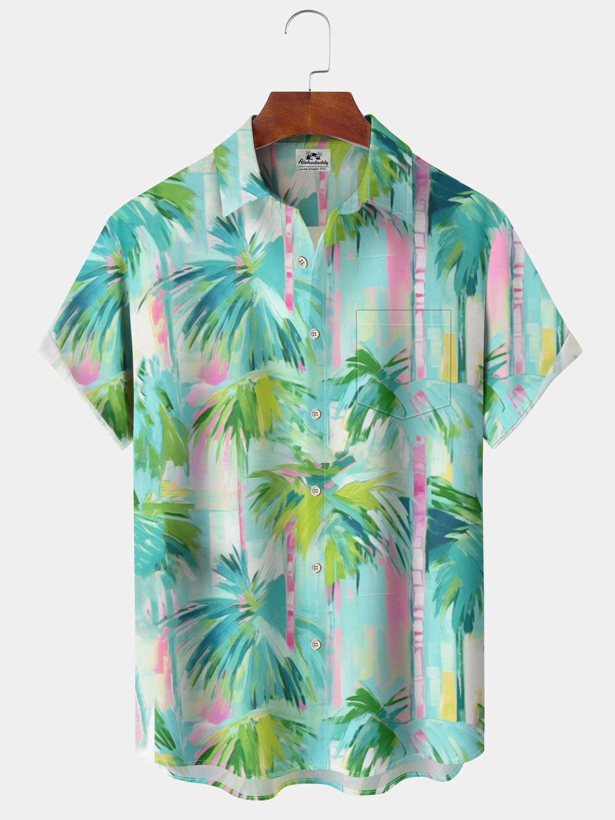 Alohadaddy® Hawaiian Palm Tree Print Pocket Stretch Men's Short Sleeve Shirt Big & Tall