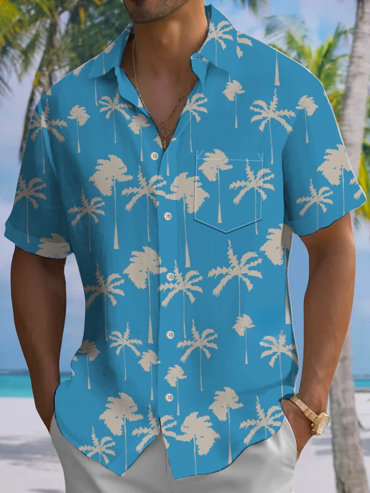 Alohadaddy® Hawaiian Palm Trees Art Print Pockets Moisture Wicking Oversized Stretch Shirt