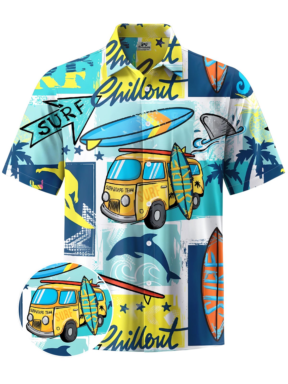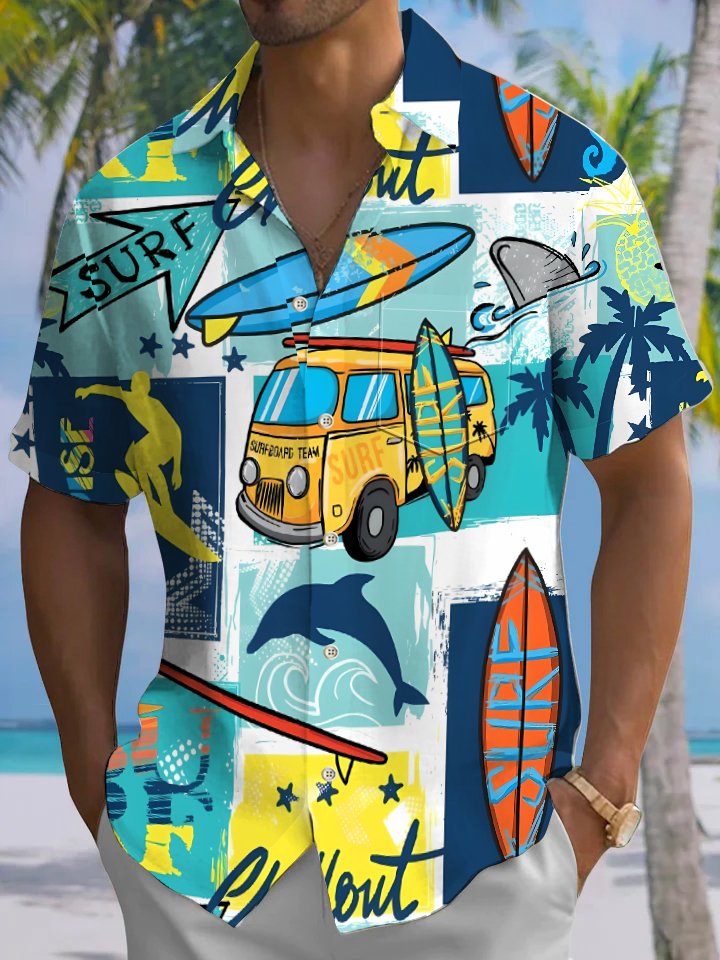 Alohadaddy® Hawaiian Vacation Art Print Moisture Wicking Chest Pocket Mens Short Sleeve Shirt Big & Tall