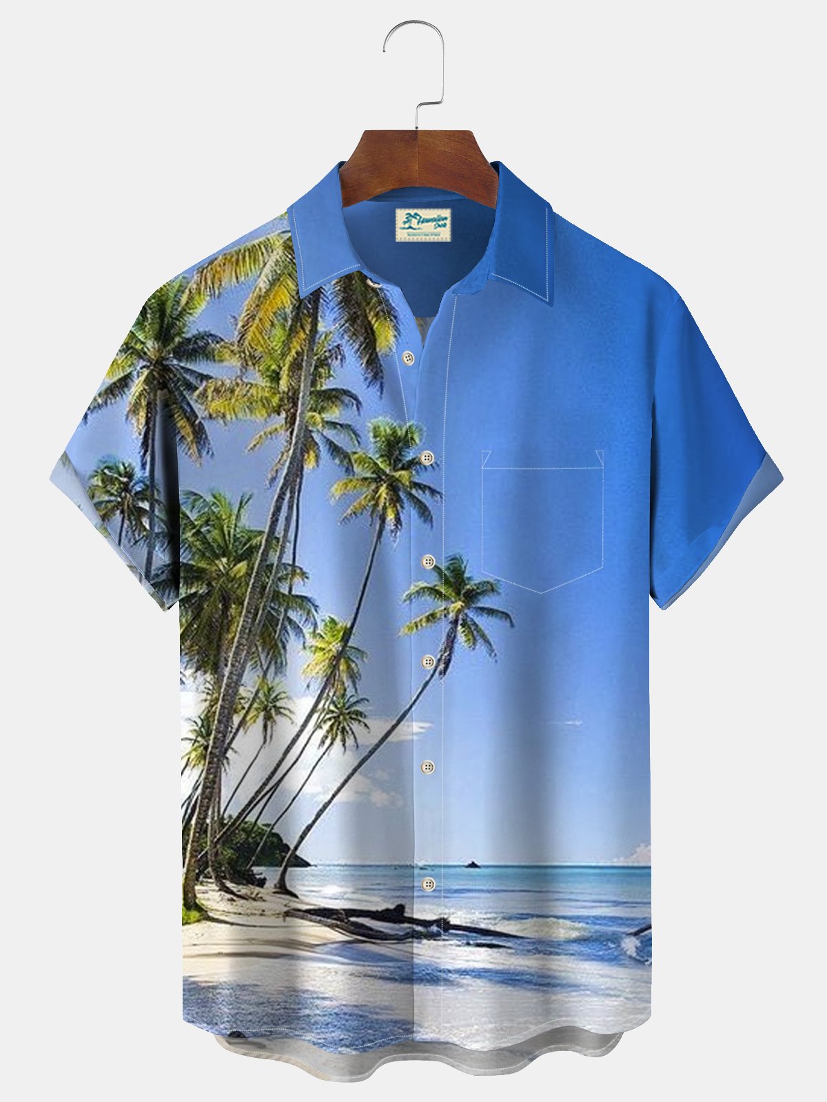 Chemise hawaïenne Aloha grande taille pour homme avec imprimé cocotiers et plage Alohadaddy