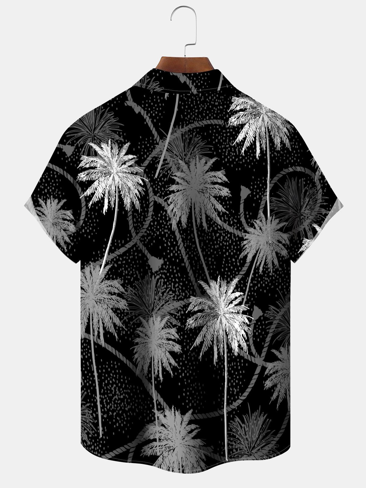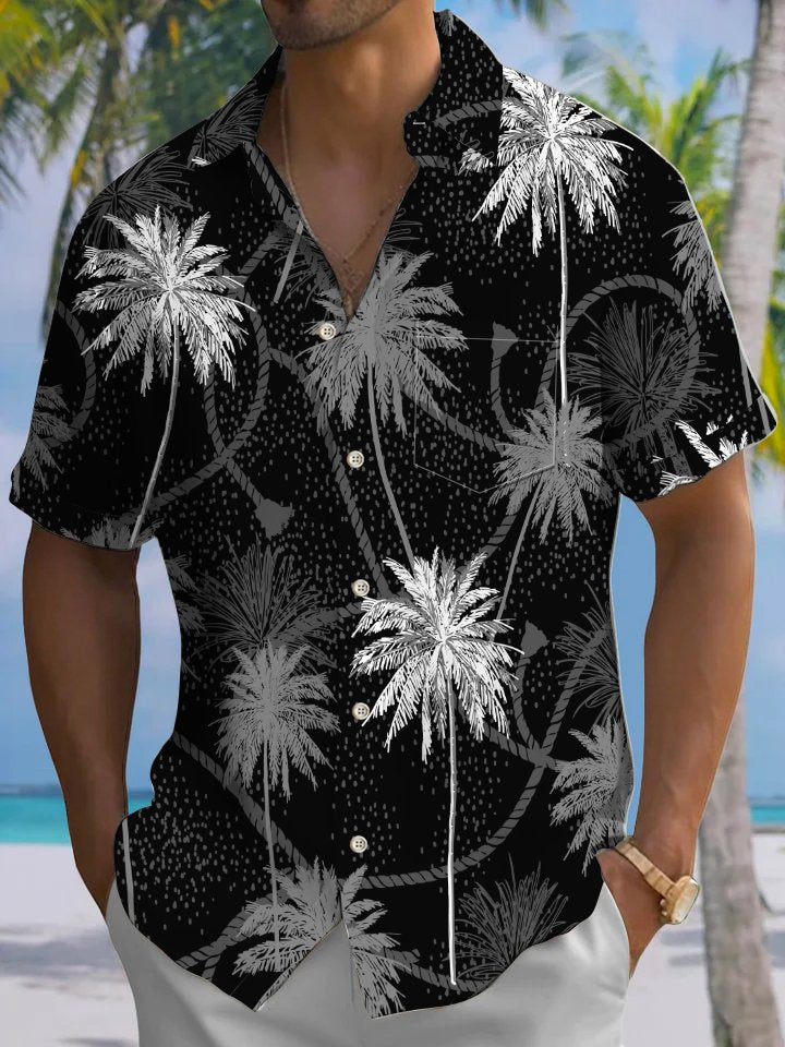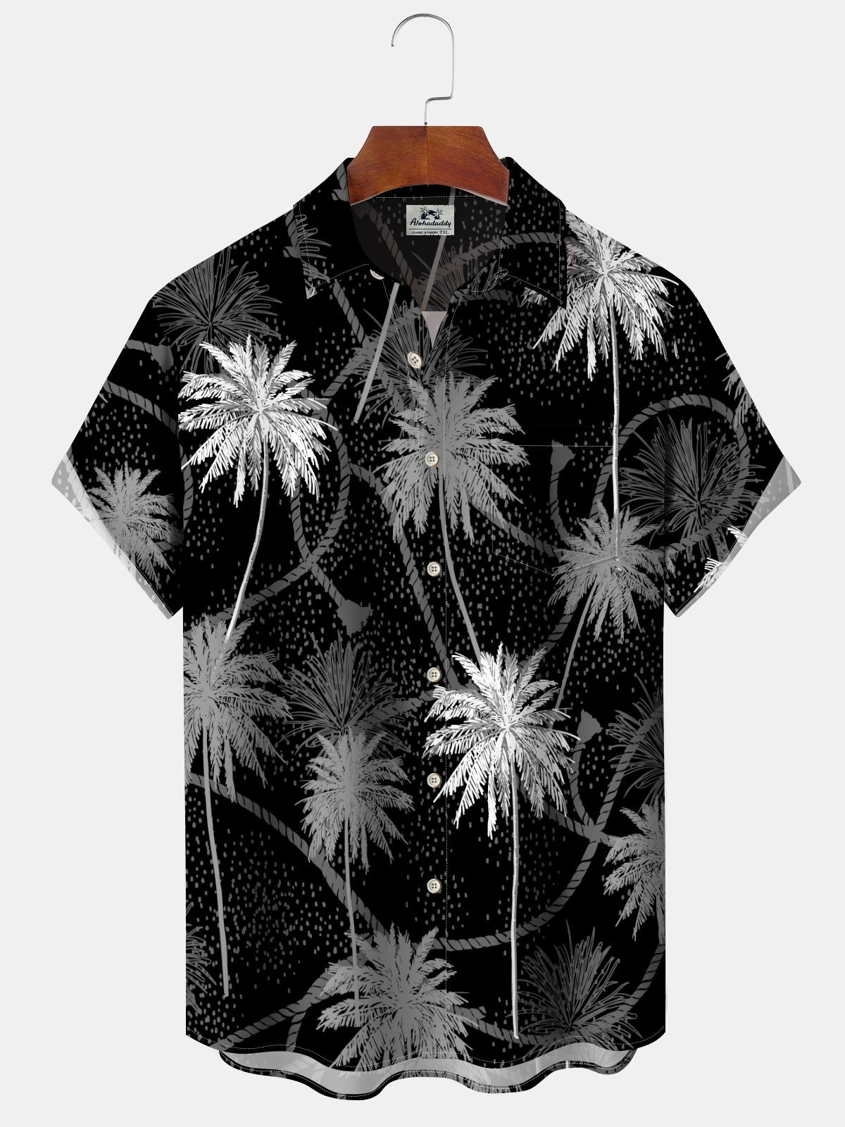 Alohadaddy Casual Collection Hawaii Palm Trees Print Art Button Cardigan Pockets Breathable Stretch Long Oversized Shirt