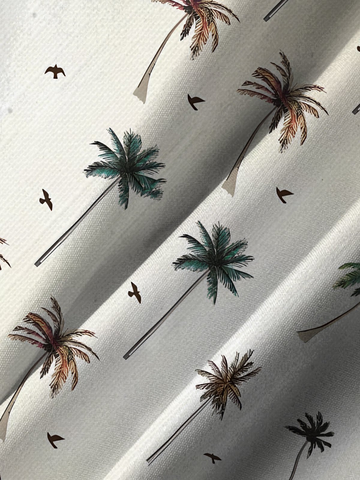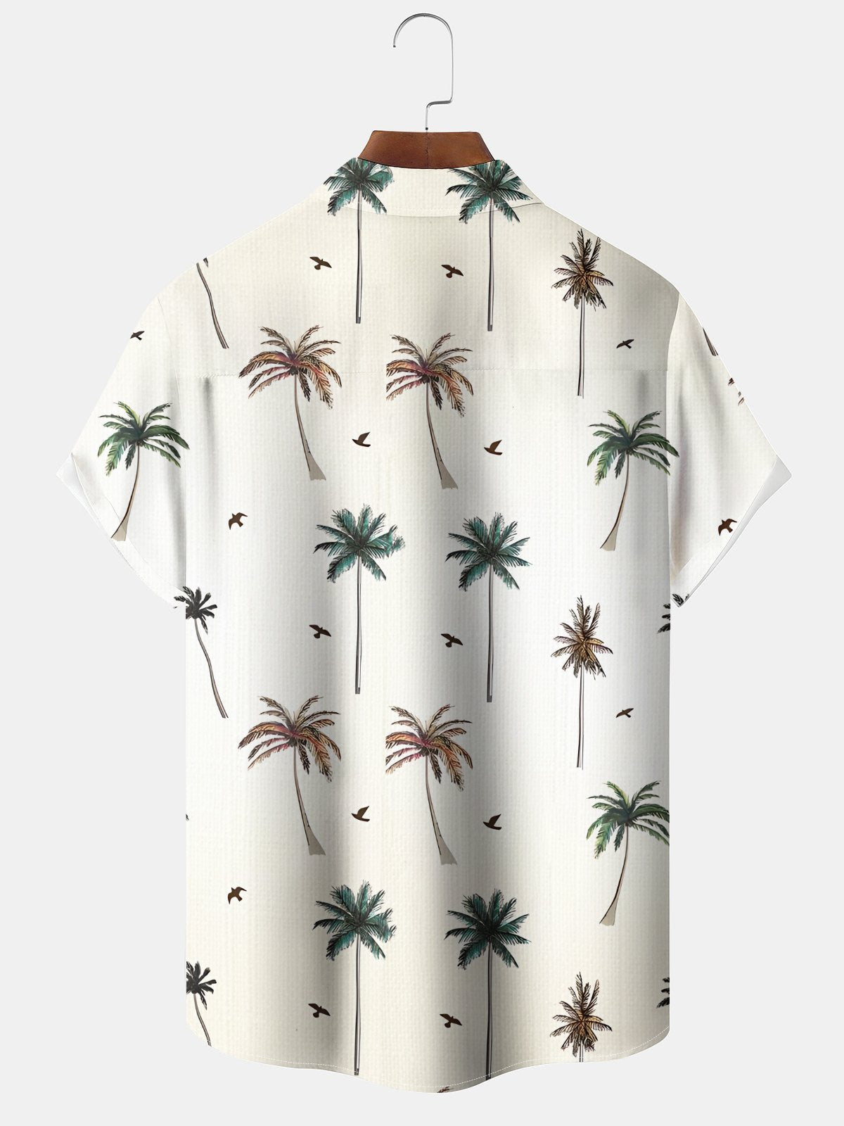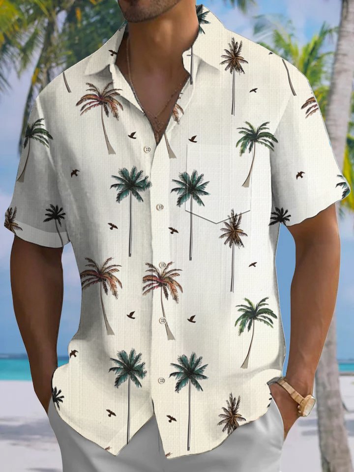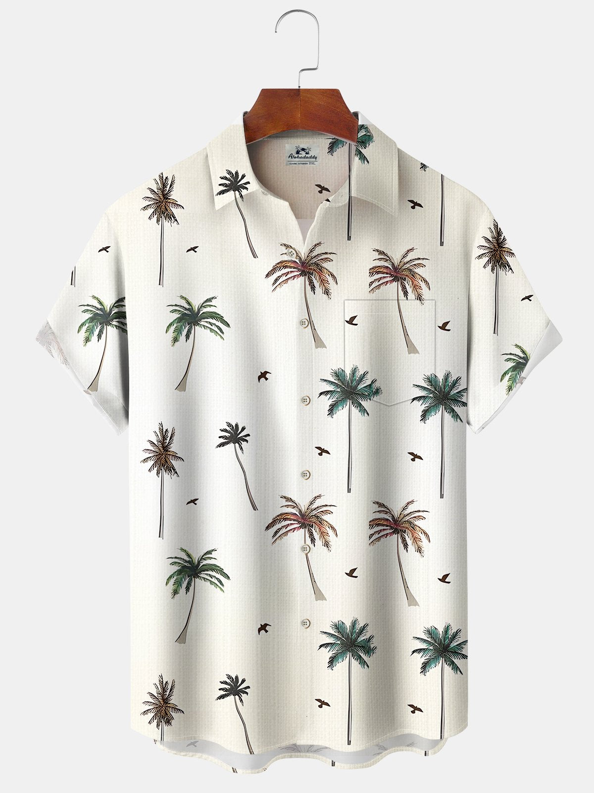 Alohadaddy Casual Collection Palm Tree Button Cardigan Pockets Fresh Stretch Polyester Short Sleeve Shirt