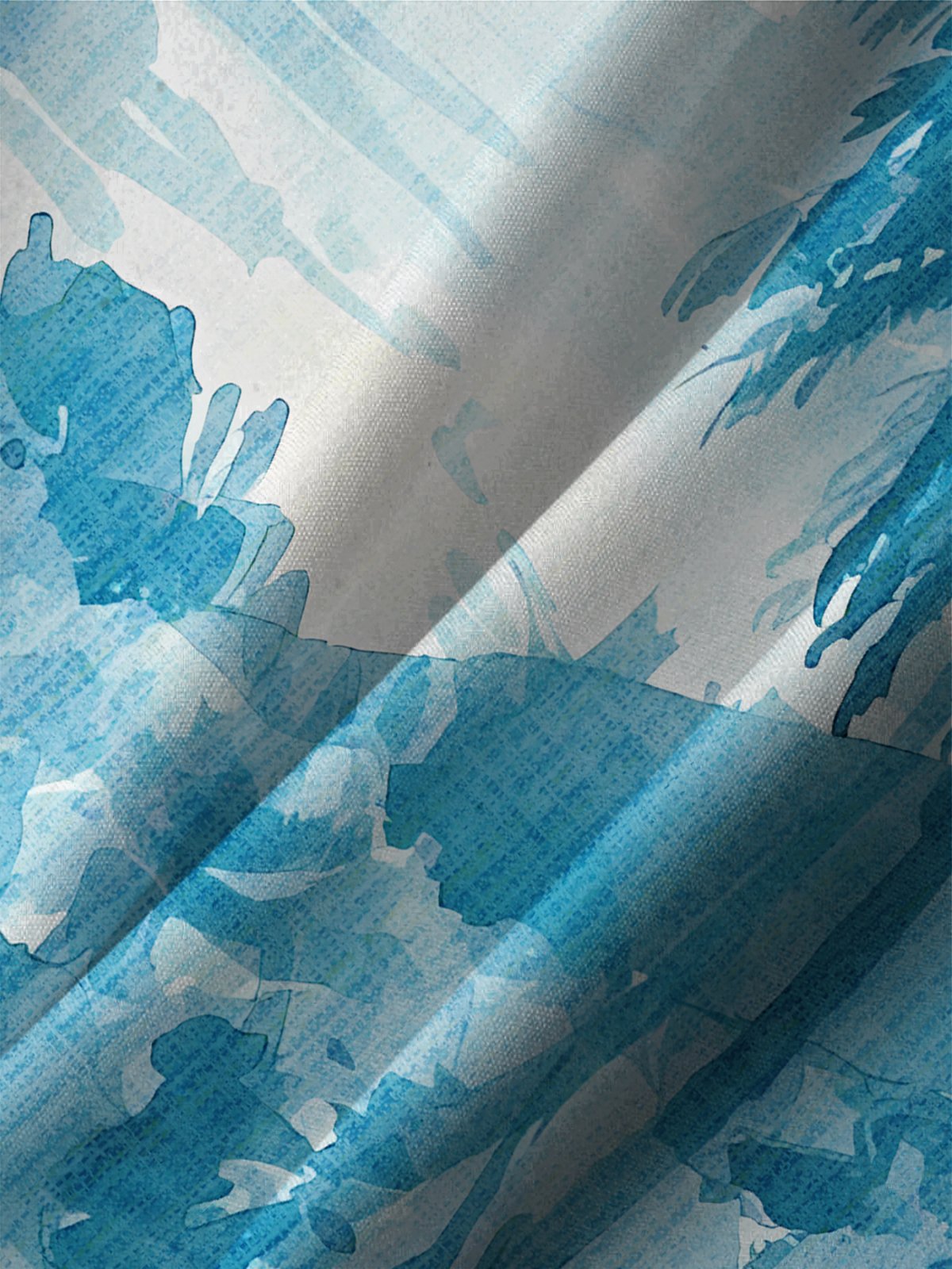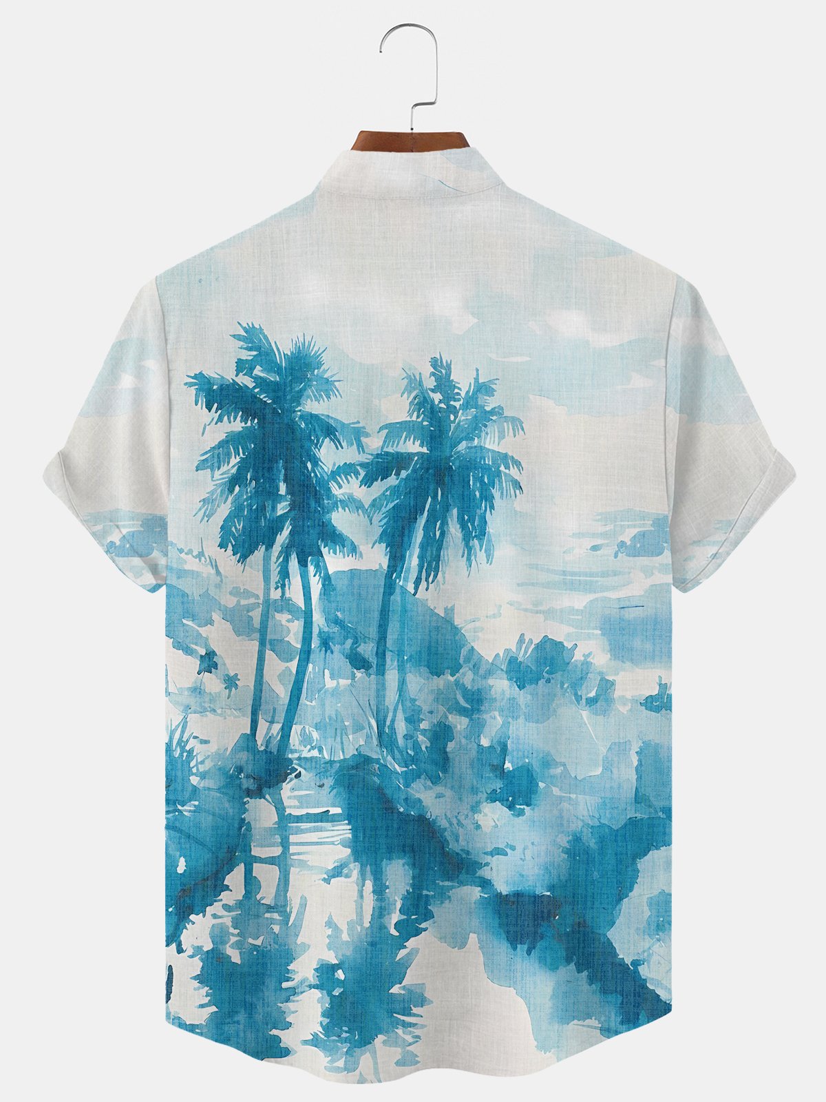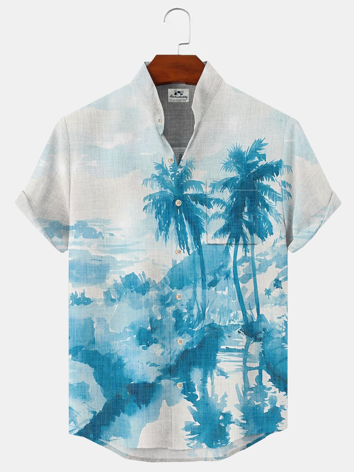 Alohadaddy Coconut Tree Beach Button Pocket Casual Short Sleeve Stand Collar Shirt