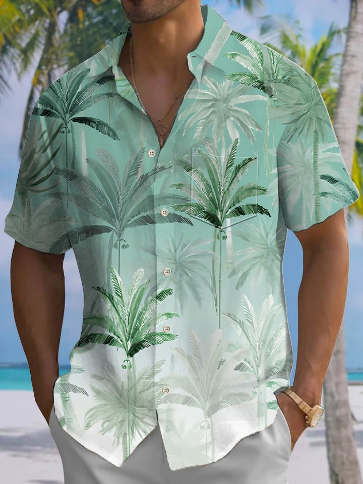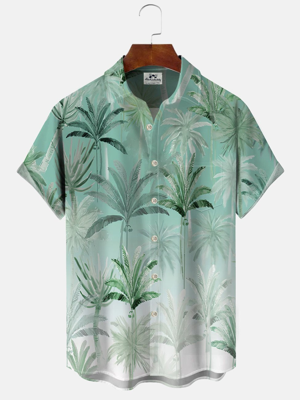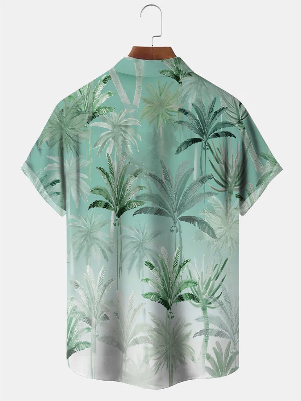 Alohadaddy Gradient Coconut Tree Button Pocket Casual Short Sleeve Shirt