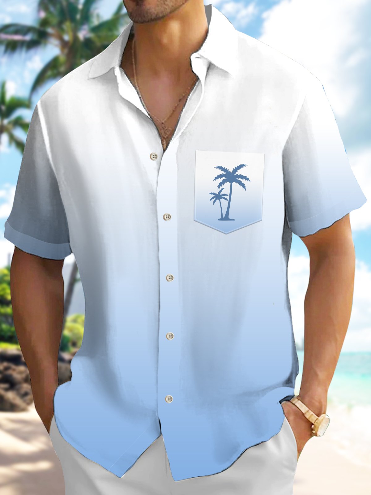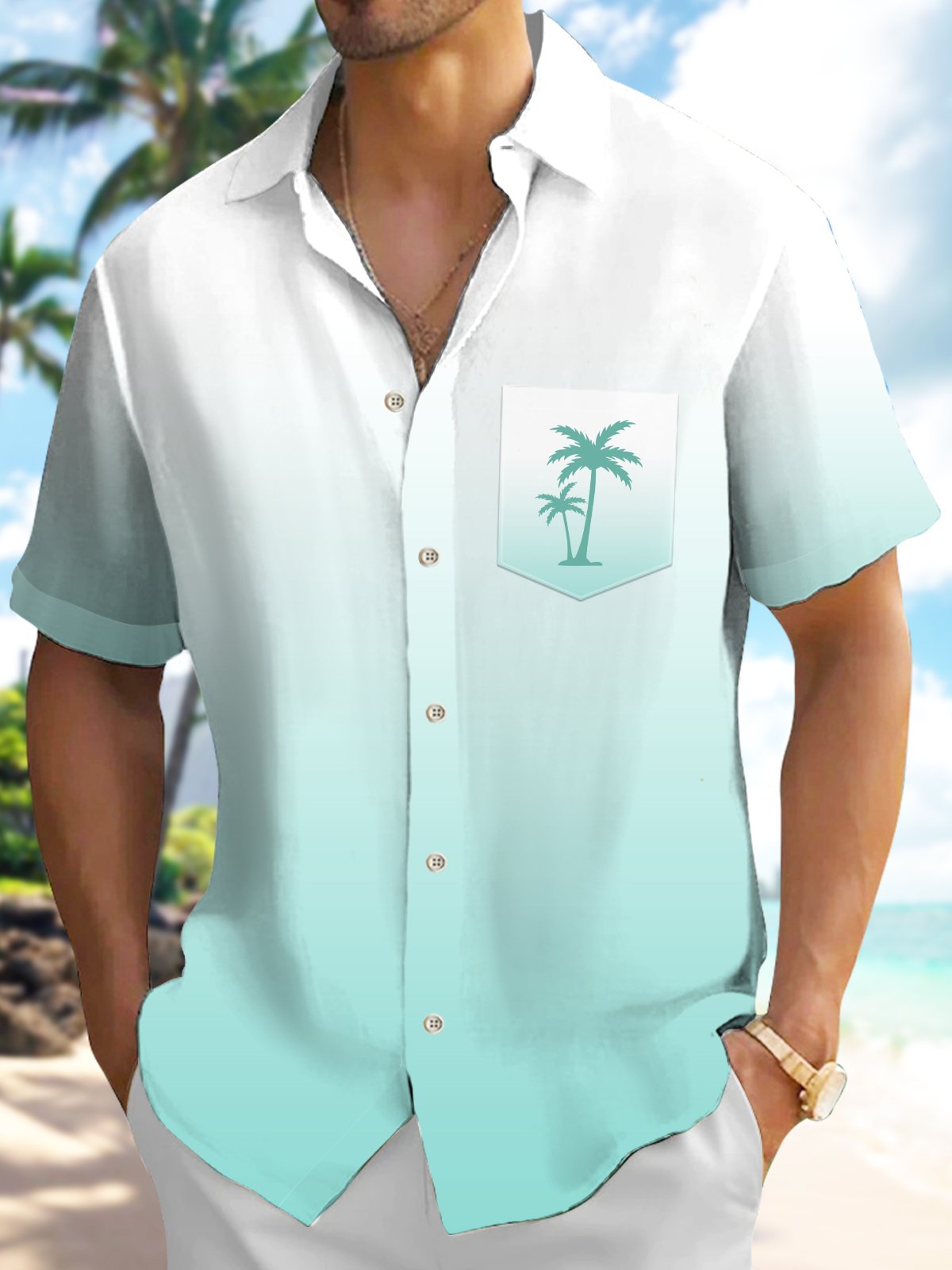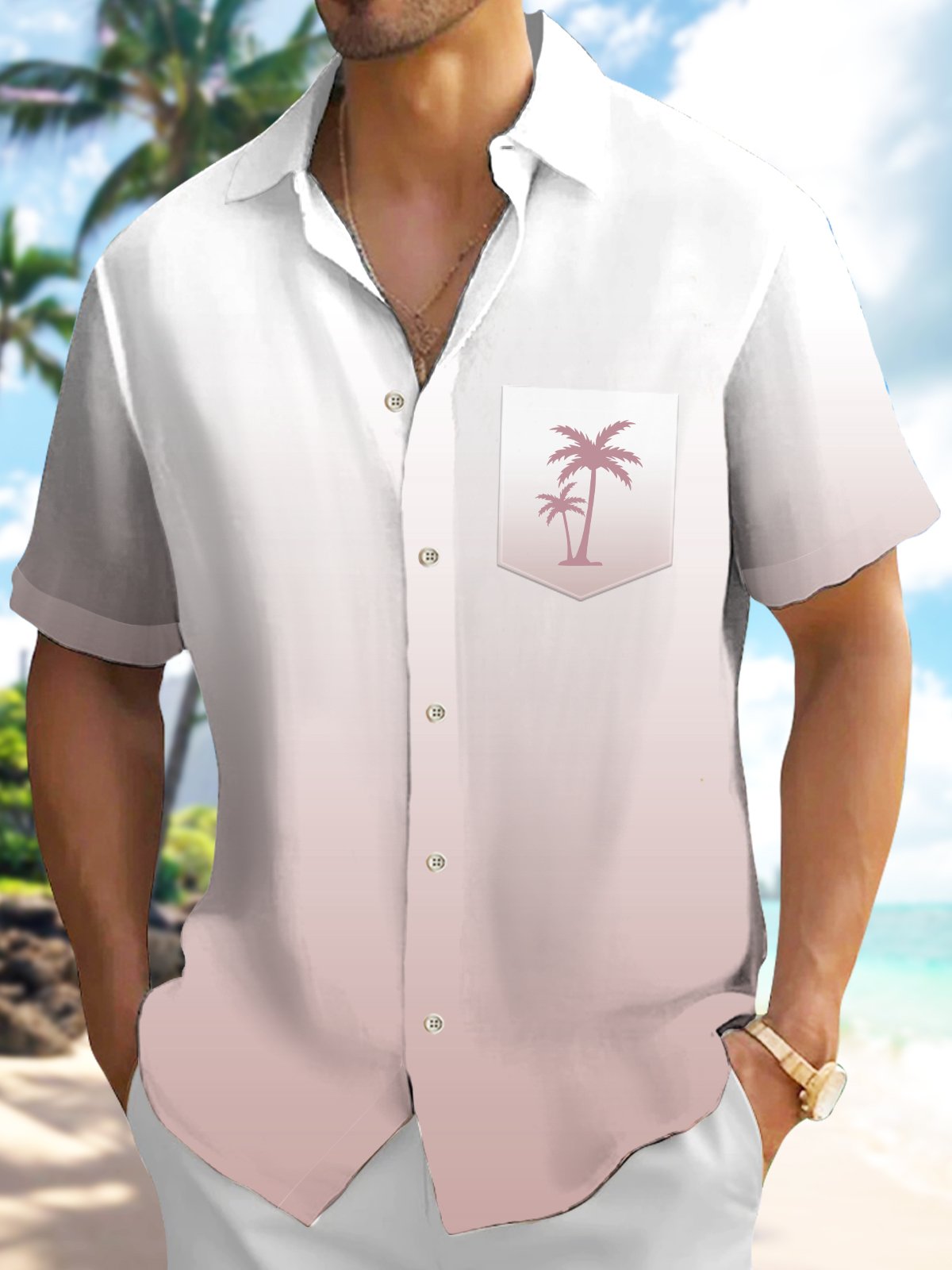 Alohadaddy Gradient Solid Color Basic Hawaiian Coconut Tree Vacation Shirt