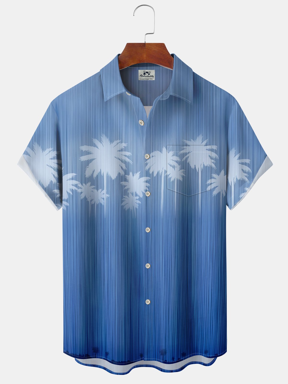 Alohadaddy Hawaii Ombre Palm Trees Art Print Button Cardigan Pockets Stretch Large Size Short Sleeve Shirt
