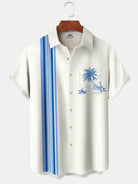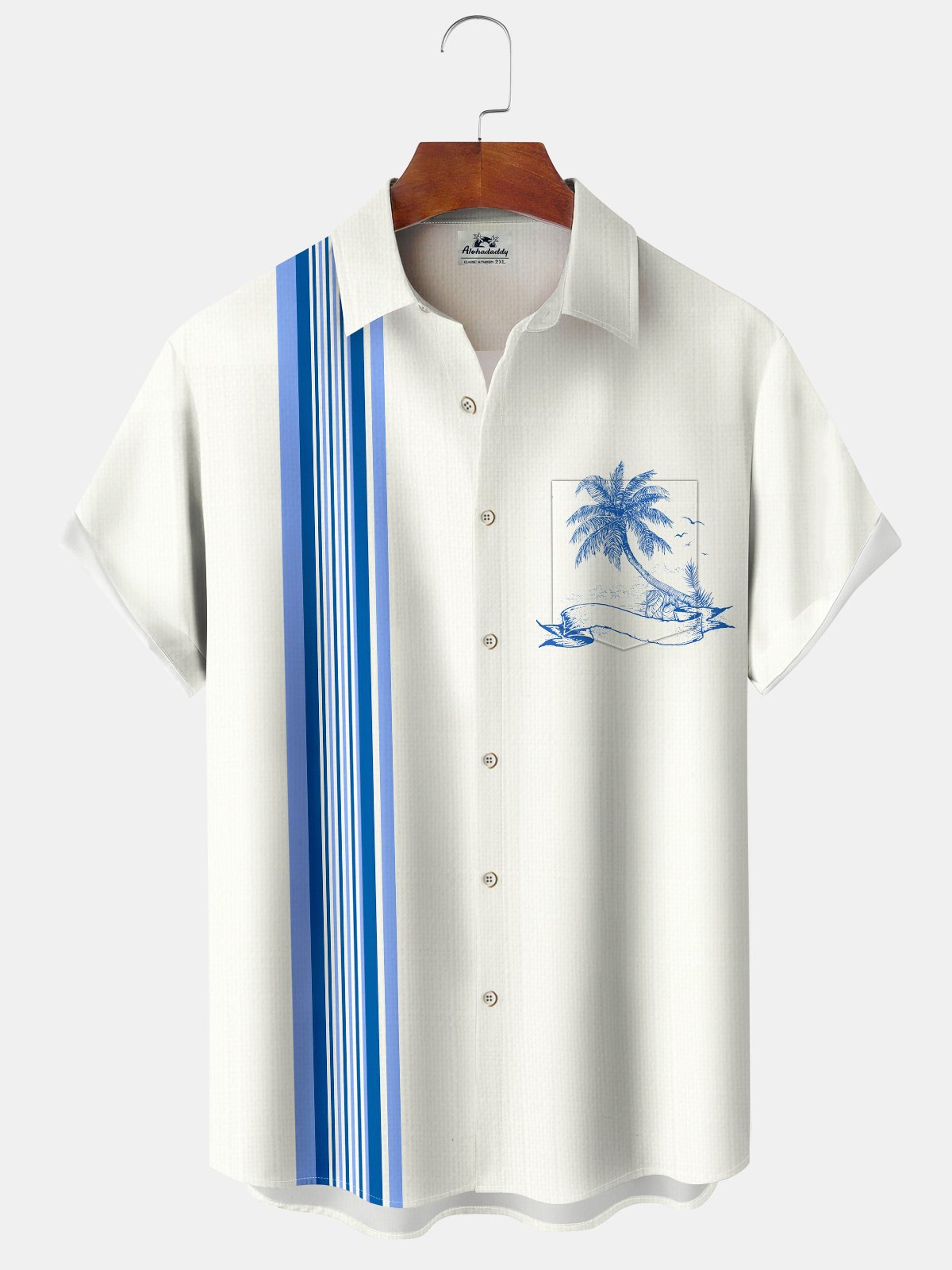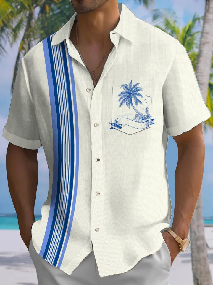 Alohadaddy Hawaiian Vacation Casual Daily Stripes Palm Tree Print Art Button Cardigan Pockets Breathable Soft Long Large Size Short Sleeve Shirt