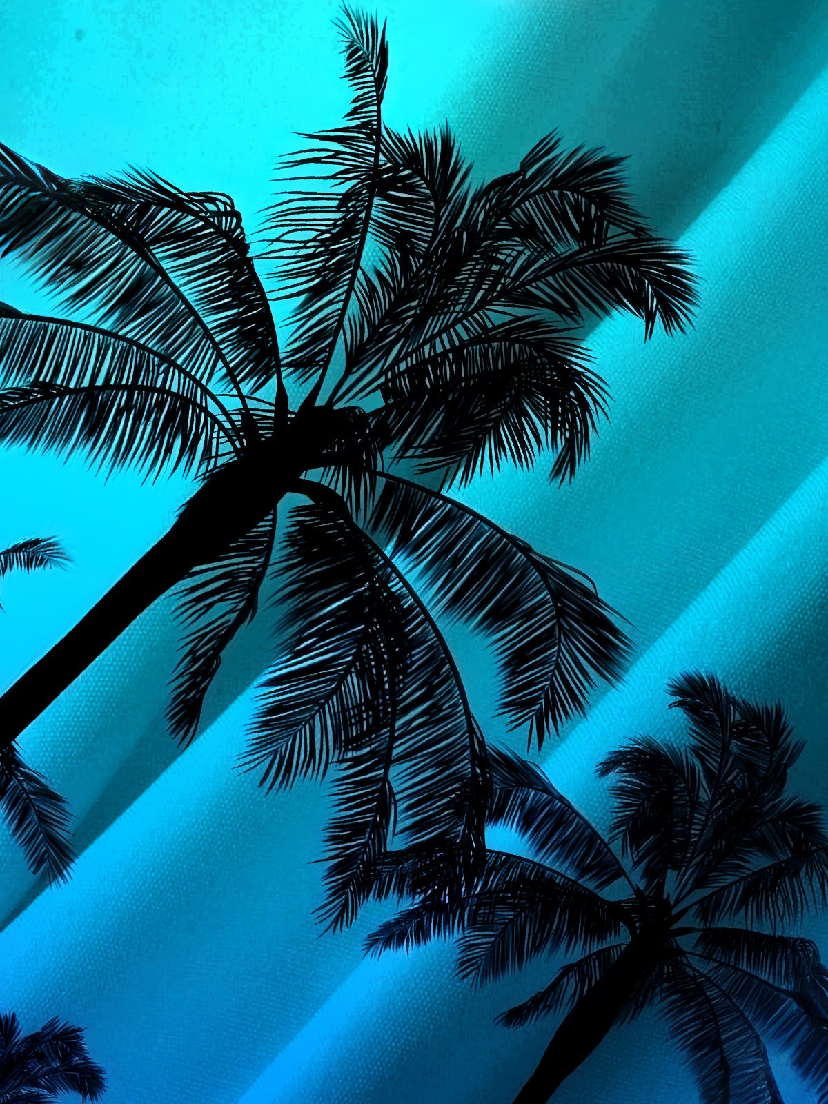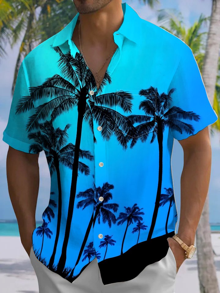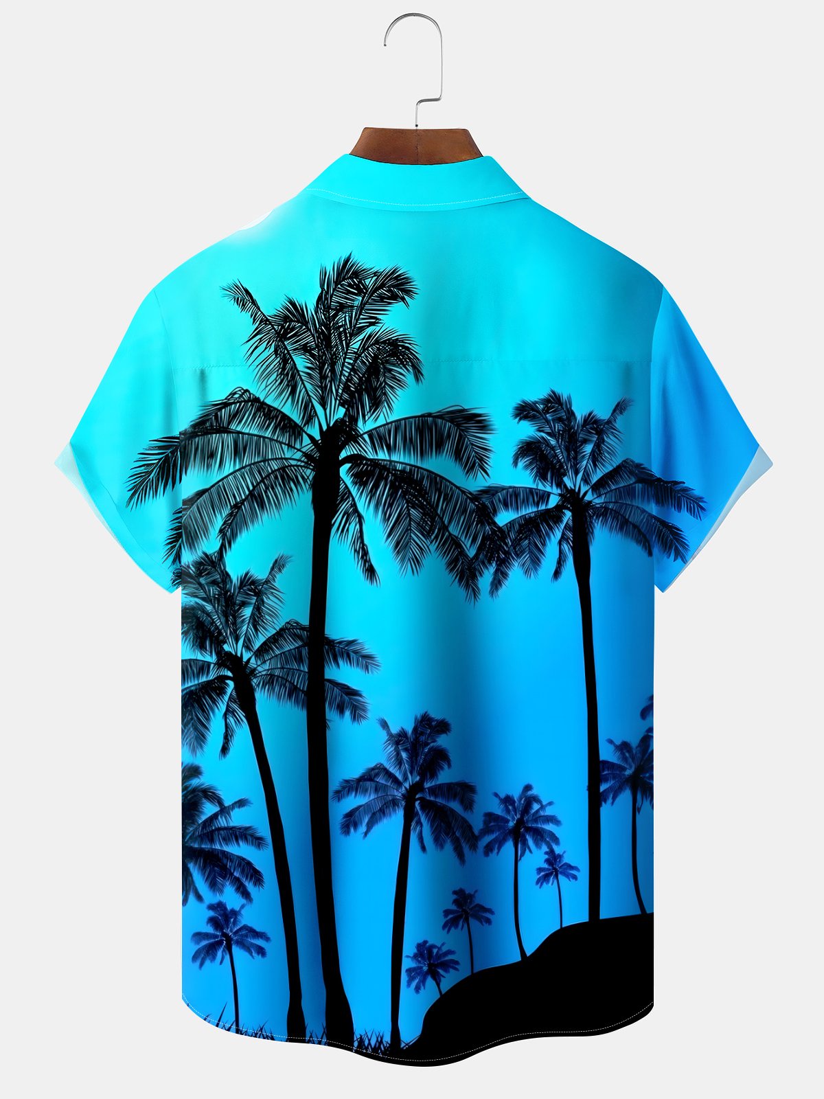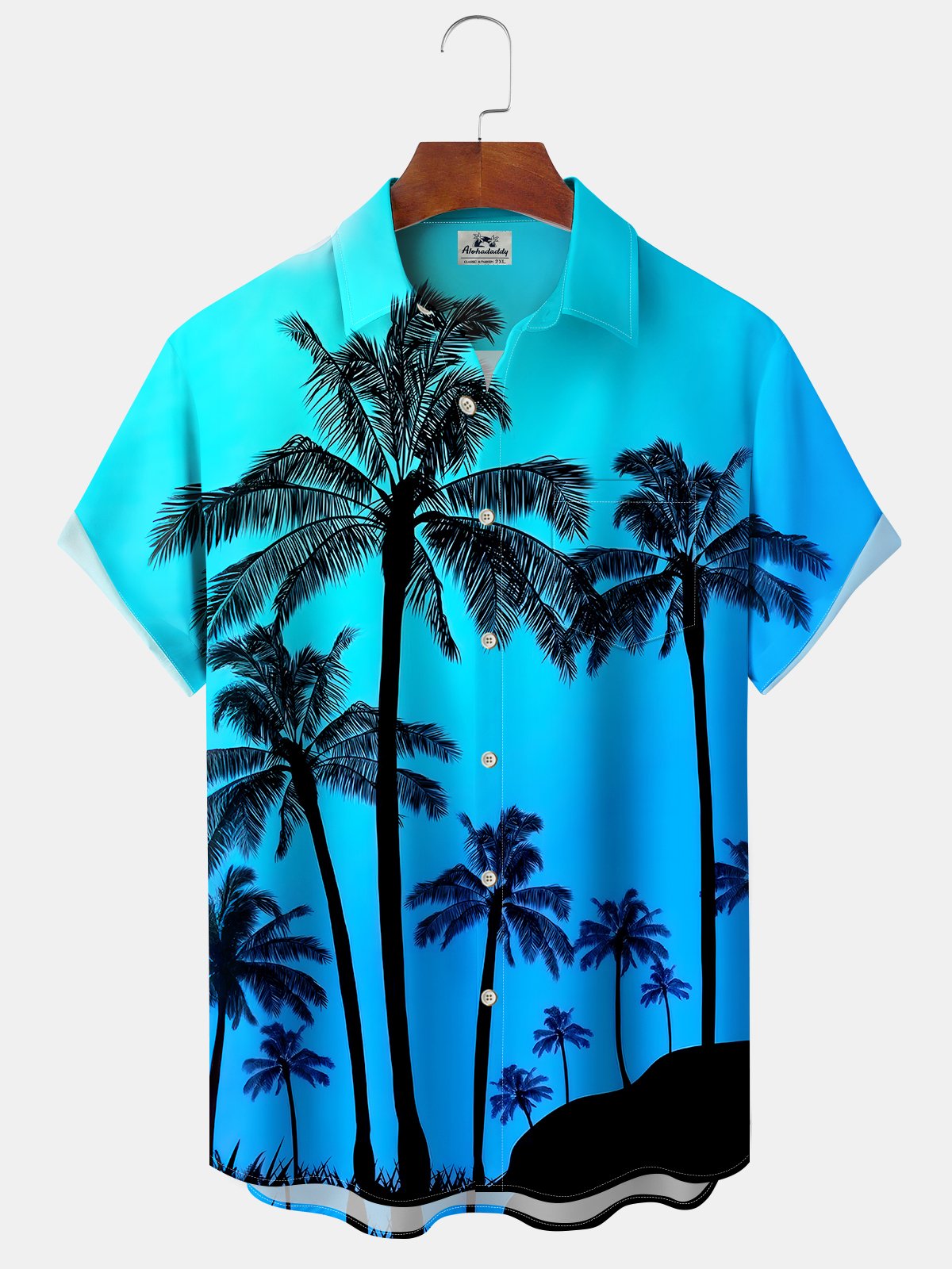 Alohadaddy Hawaiian Vacation Palm Trees Print Art Button Cardigan Pocket Polyester Stretch Large Size Long Short Sleeve Shirt
