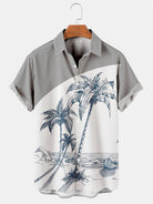 Mens Coconut Print Lapel Loose Short Sleeve Trendy Hawaiian Shirt