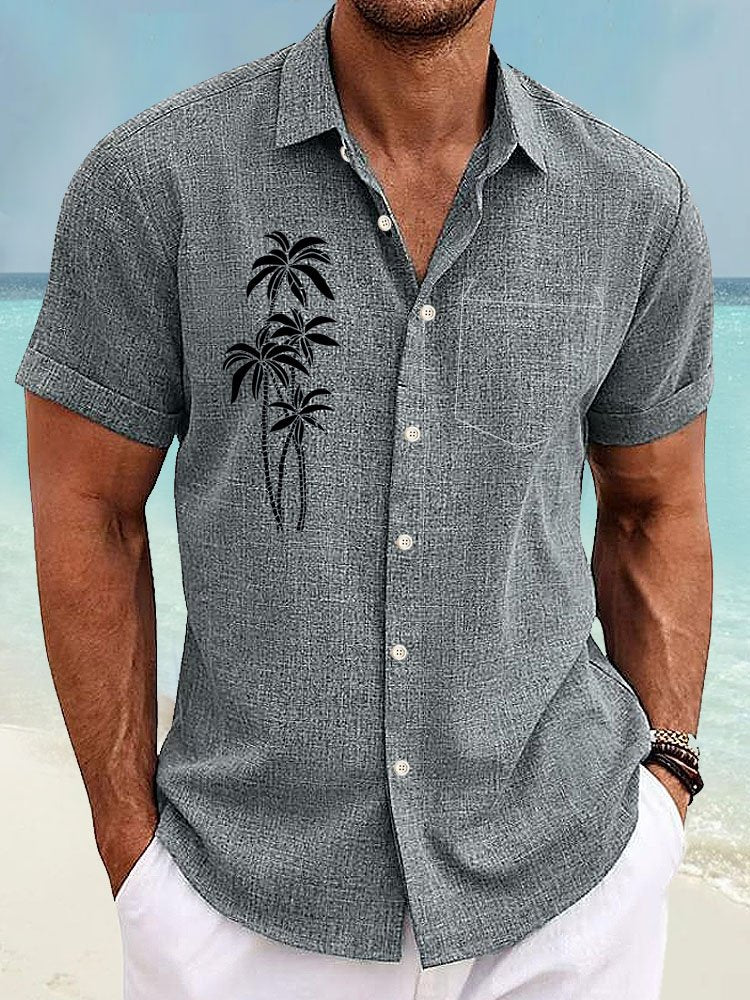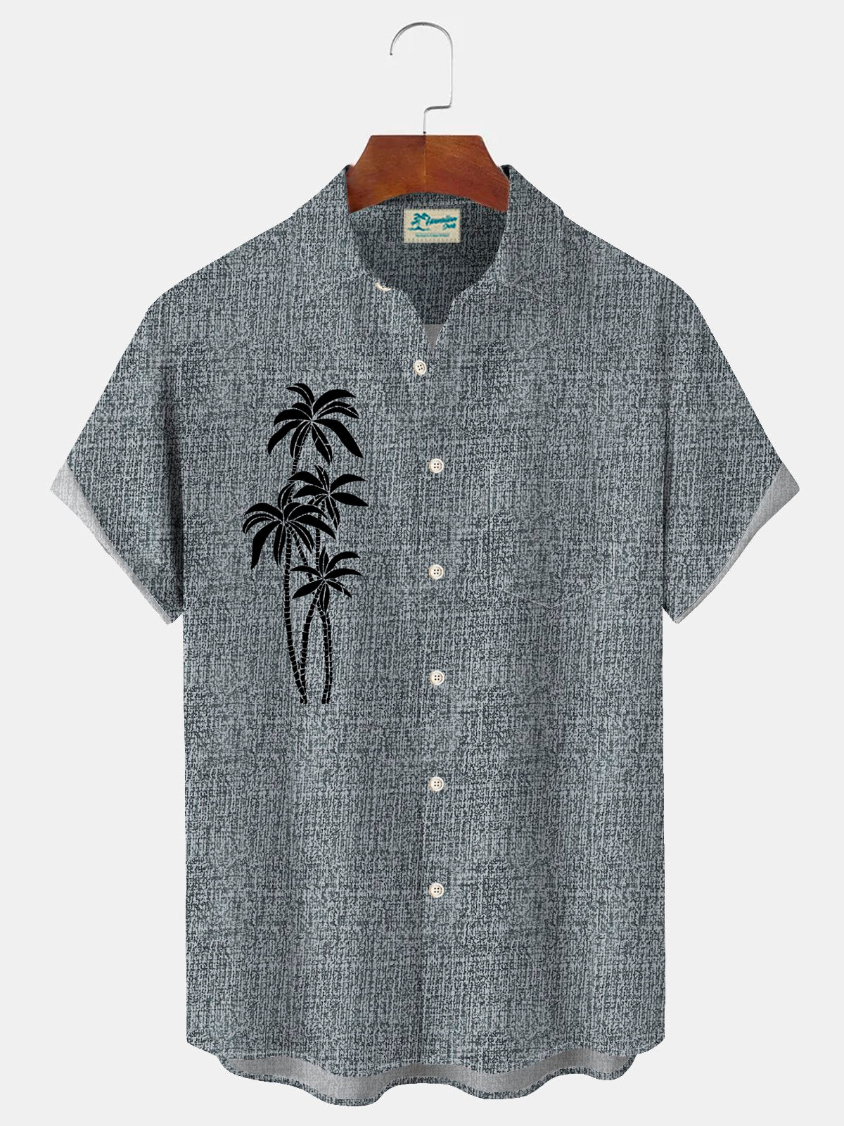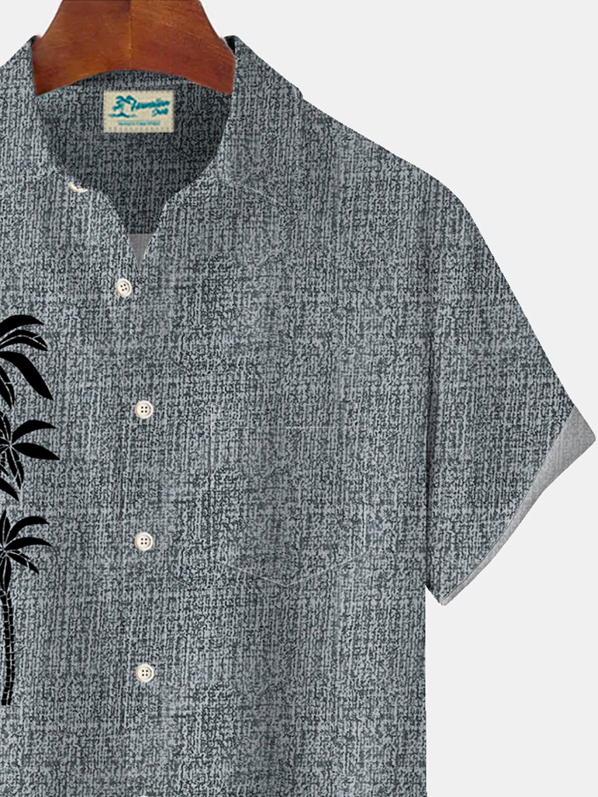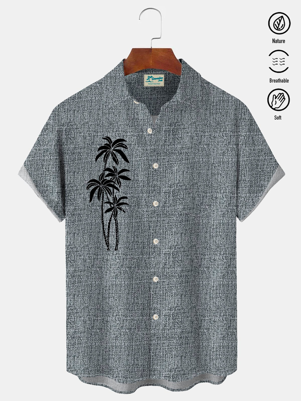 Chemise à manches courtes et poches boutonnées pour homme avec imprimé texturé de cocotiers Alohadaddy