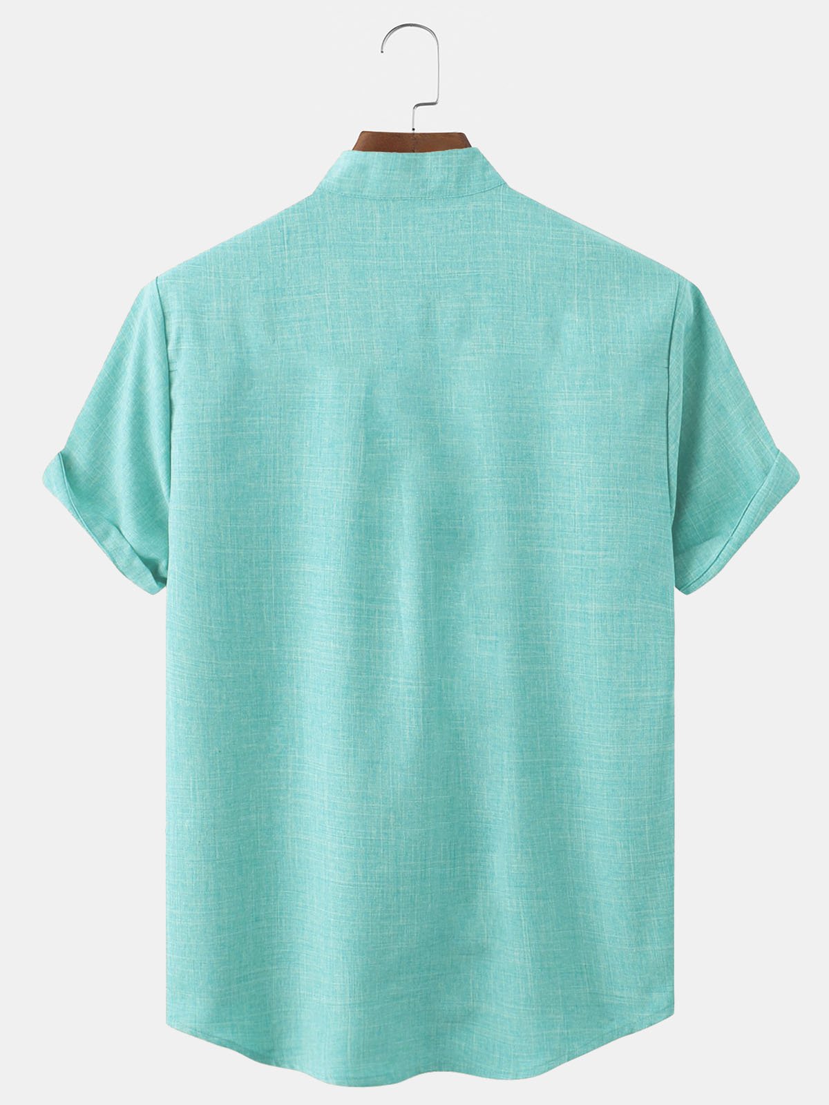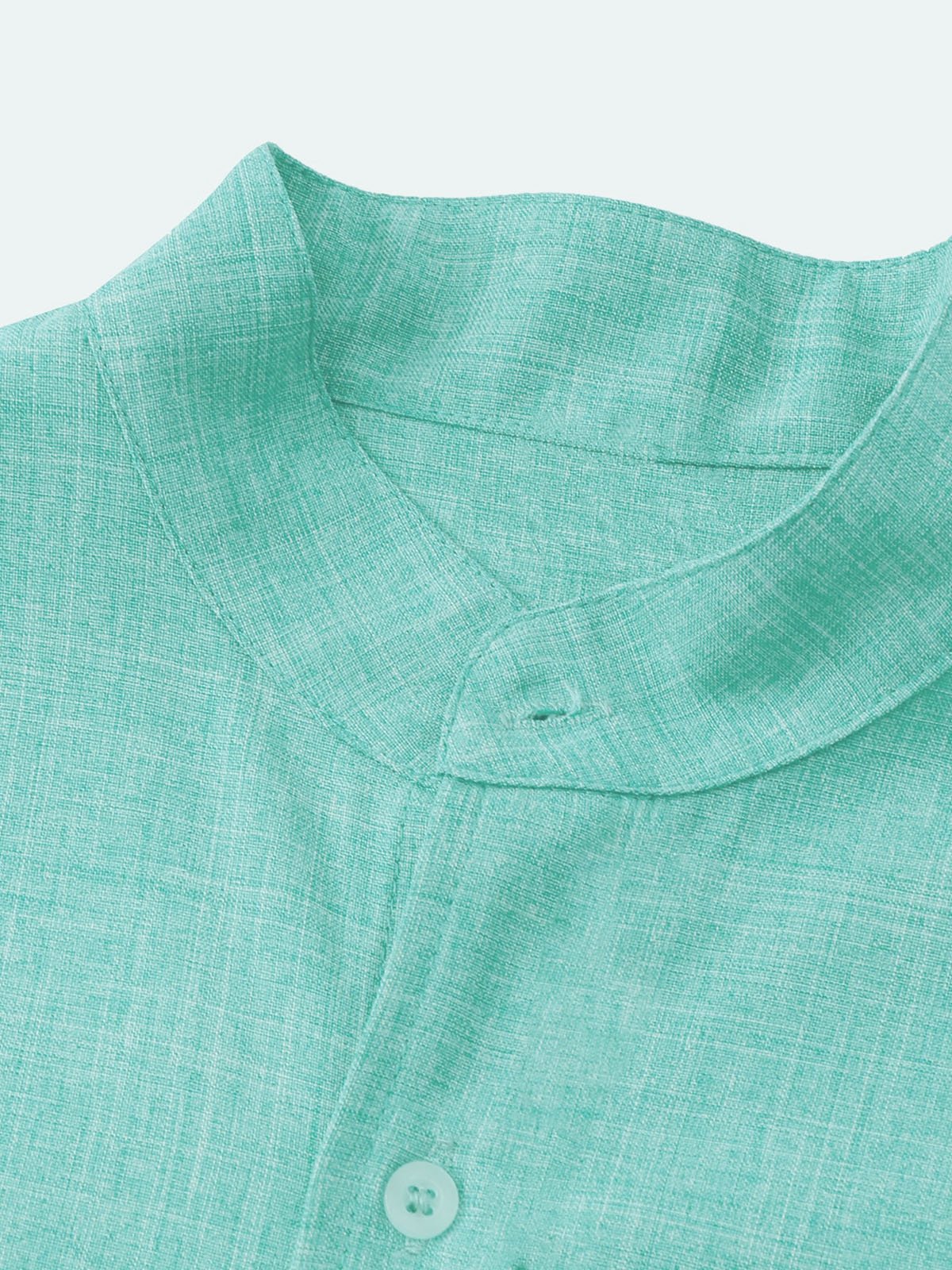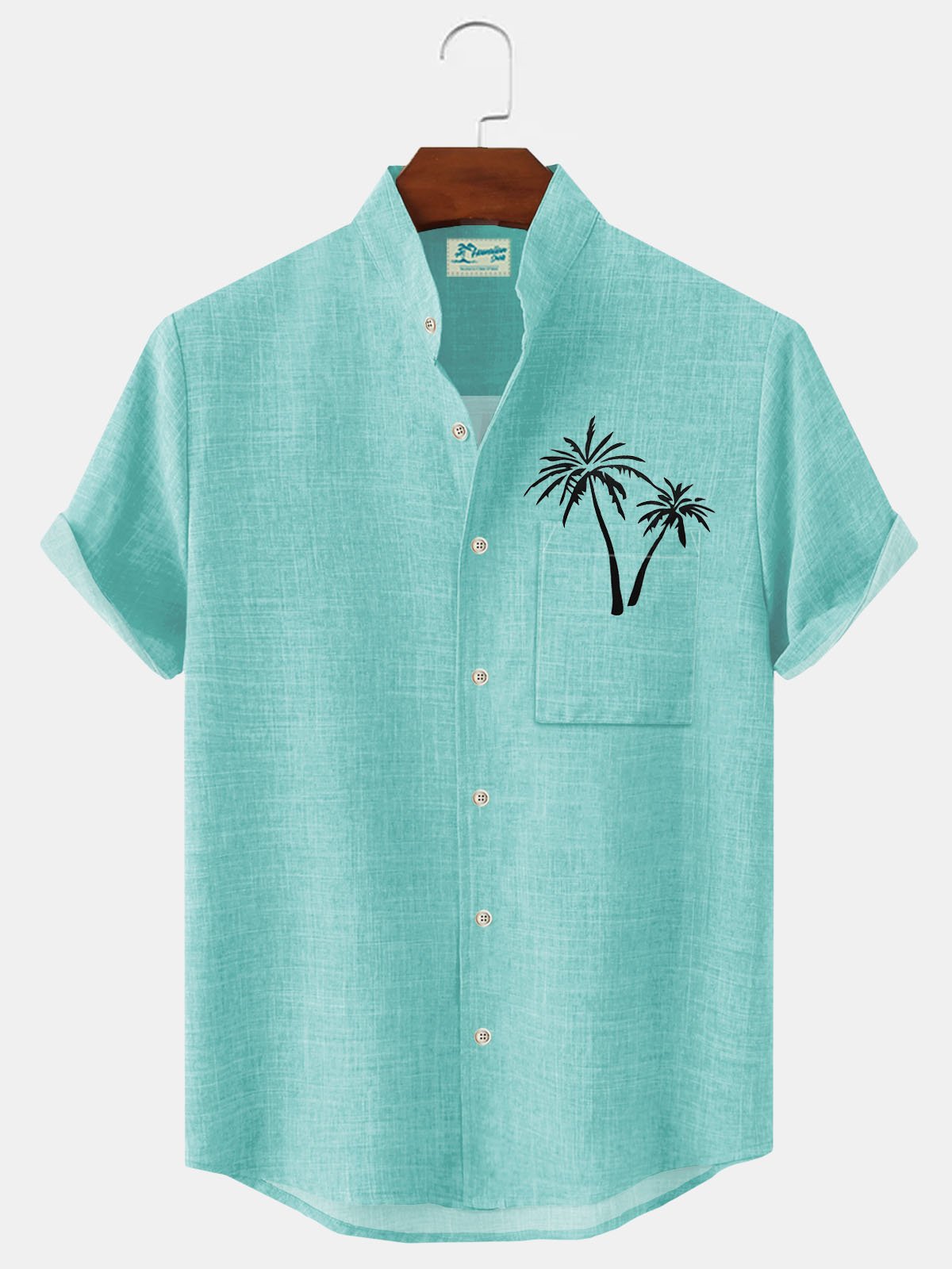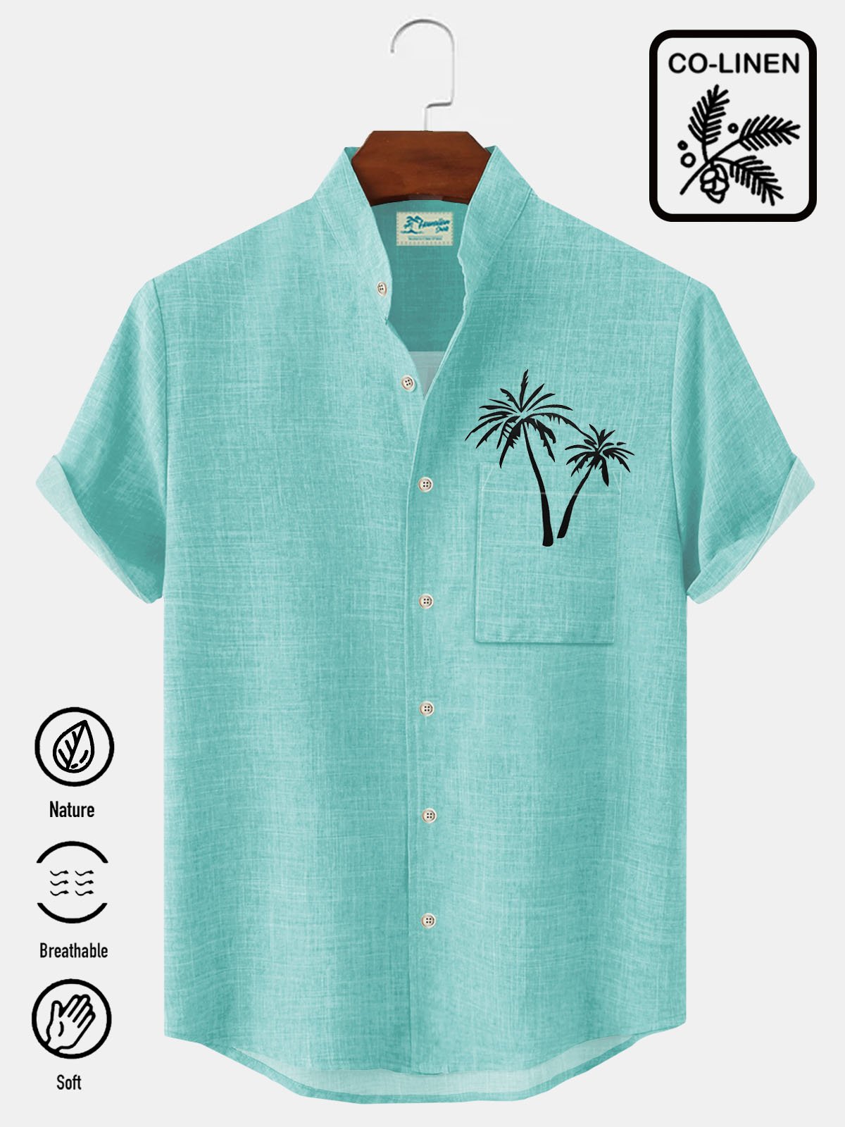 Chemise à boutons et col montant pour homme en coton et lin avec imprimé coco hawaïen cool d'Alohadaddy