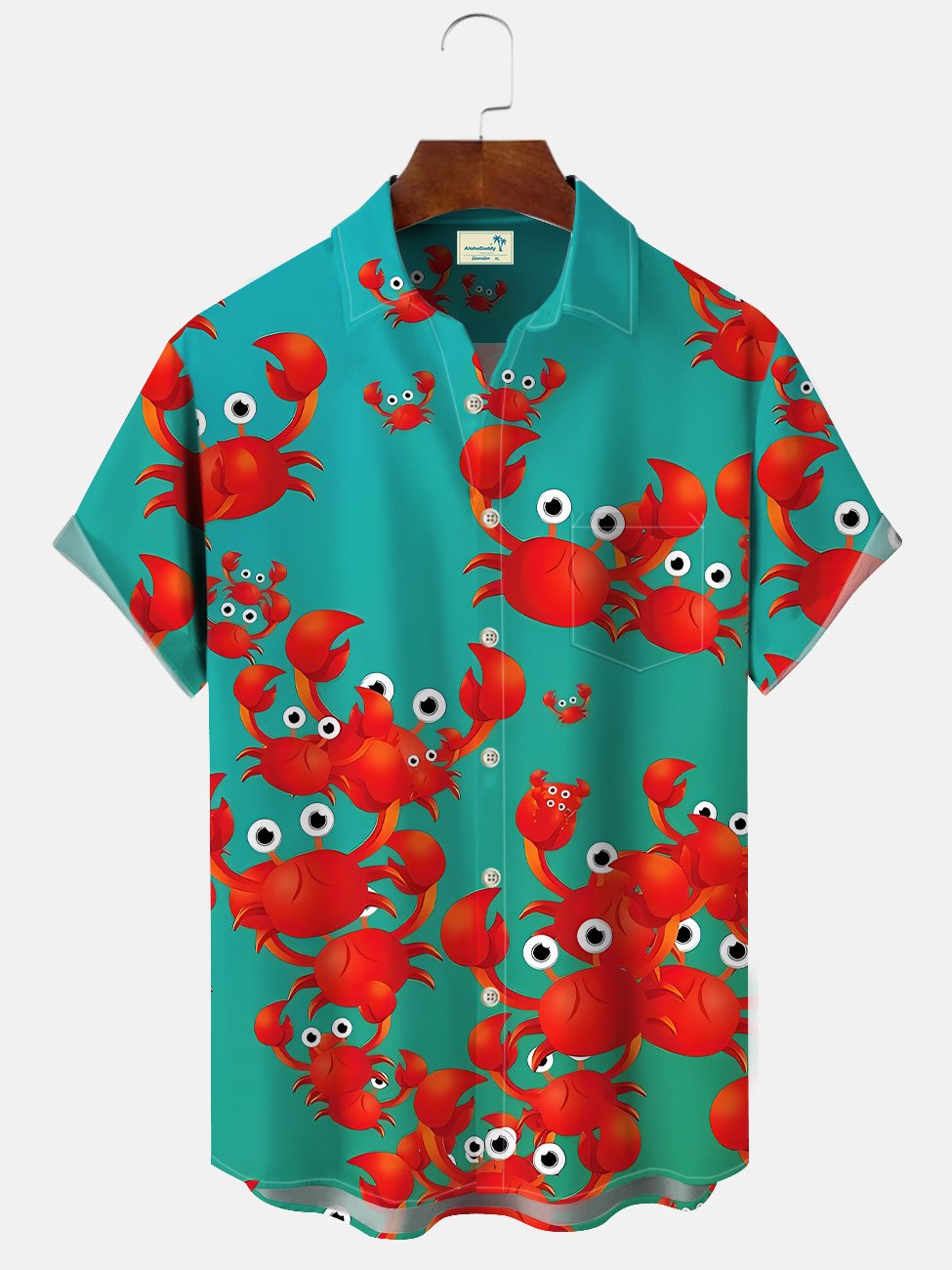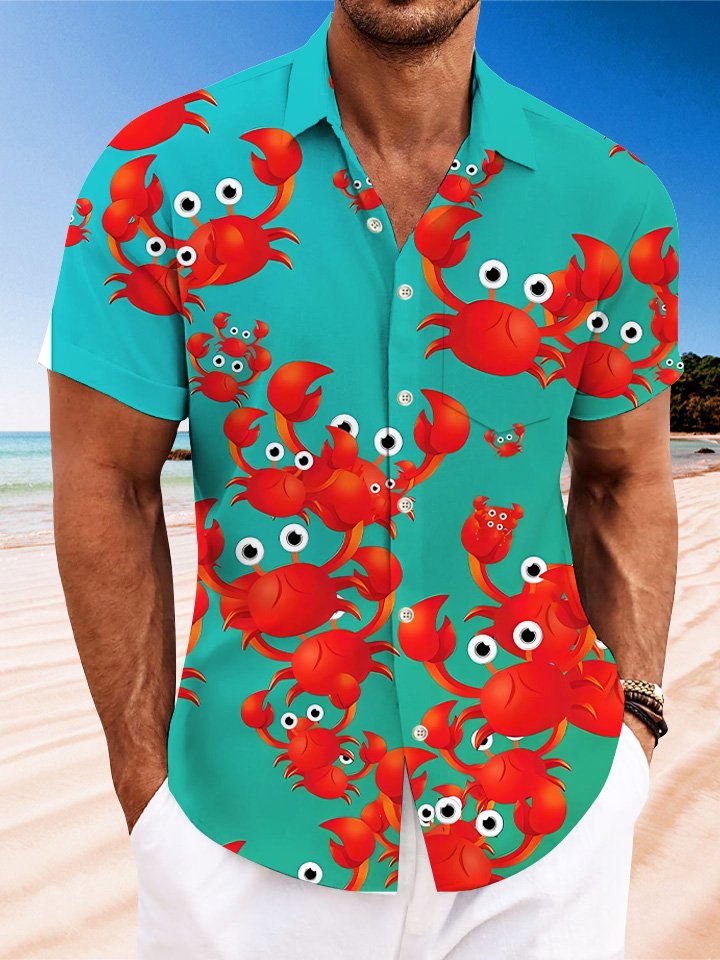 Alohadaddy Summer Ocean Crab Men Button Pocket Casual Vacation Shirt