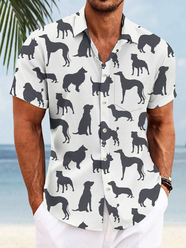 Chemise à manches courtes décontractée avec poche à boutons pour homme Alohadaddy Animal Dog