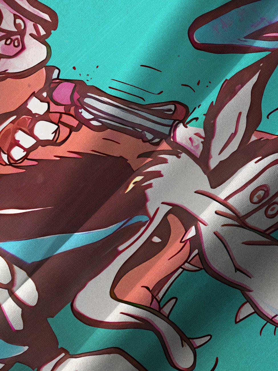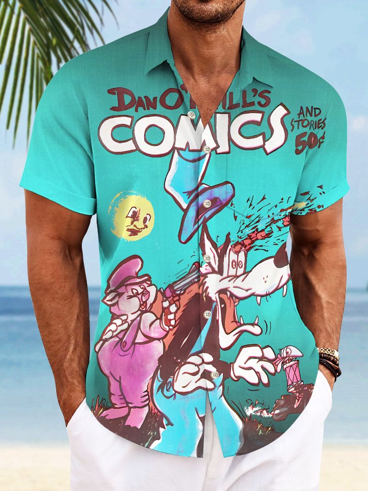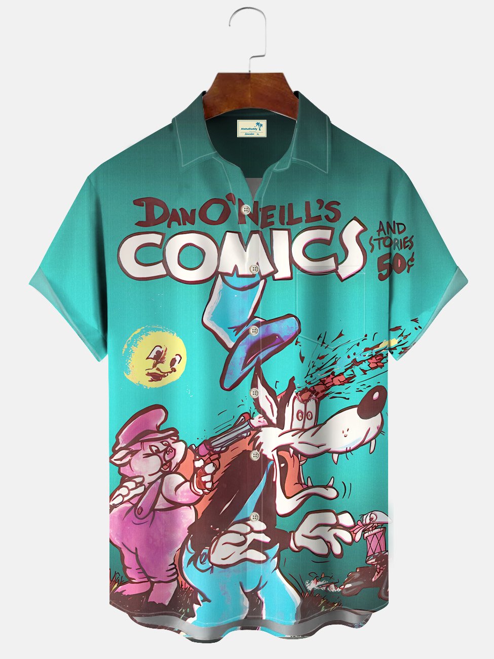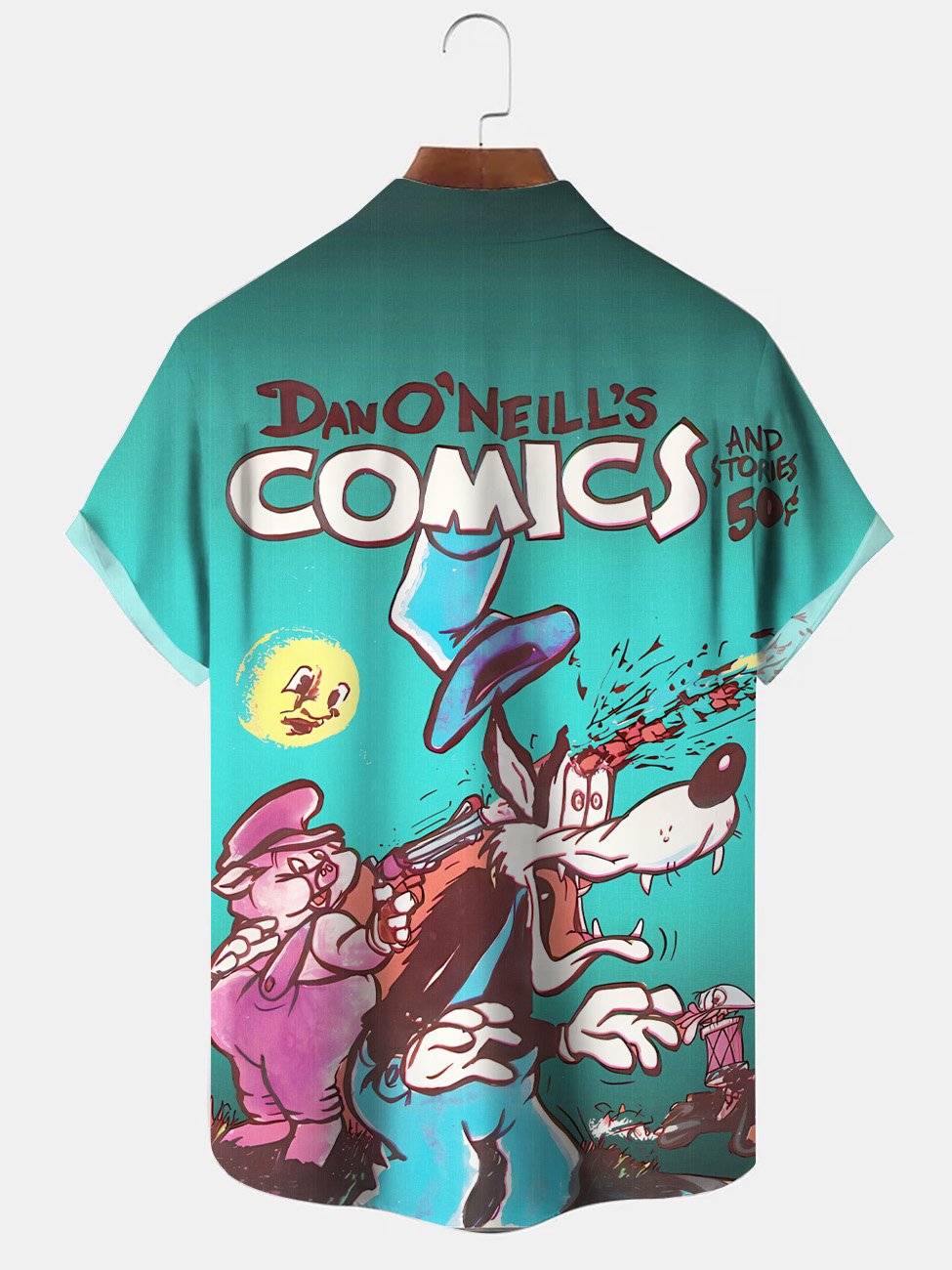 Alohadaddy Cartoon Funny Dog Men Button Pocket Casual Short Sleeve Shirt