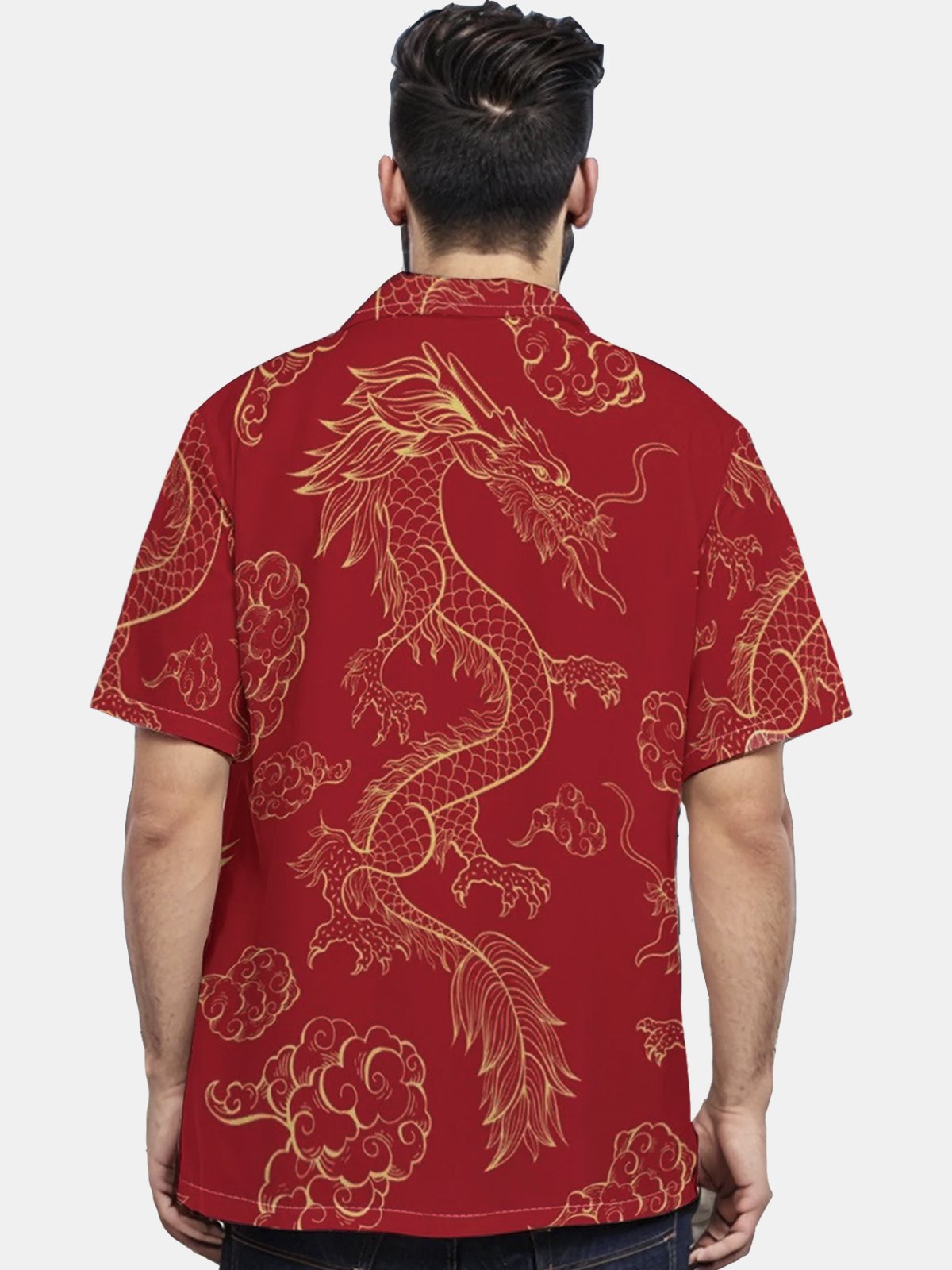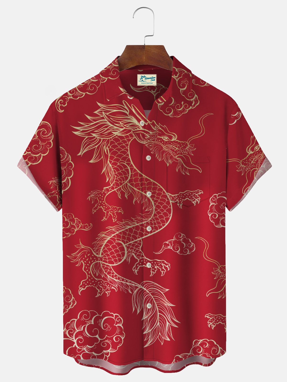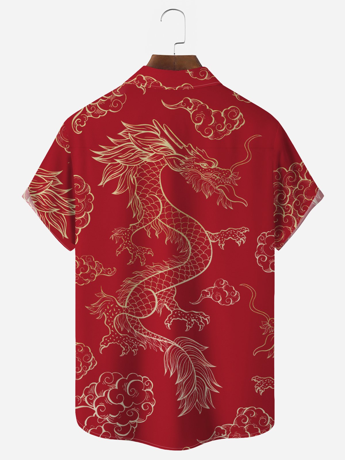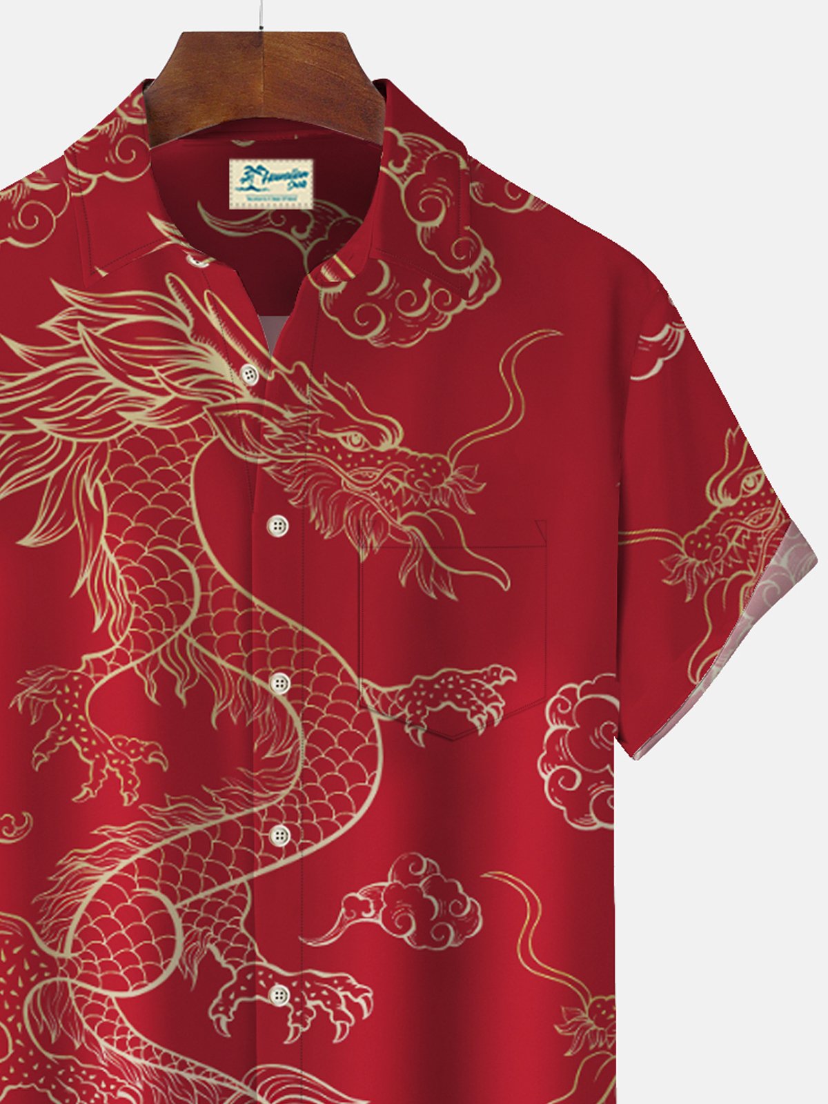 Chemises pour hommes Alohadaddy Nouvel An Oriental Dragon Rouge Chemises japonaises extensibles faciles d'entretien Chemises festives à poches Grandes tailles