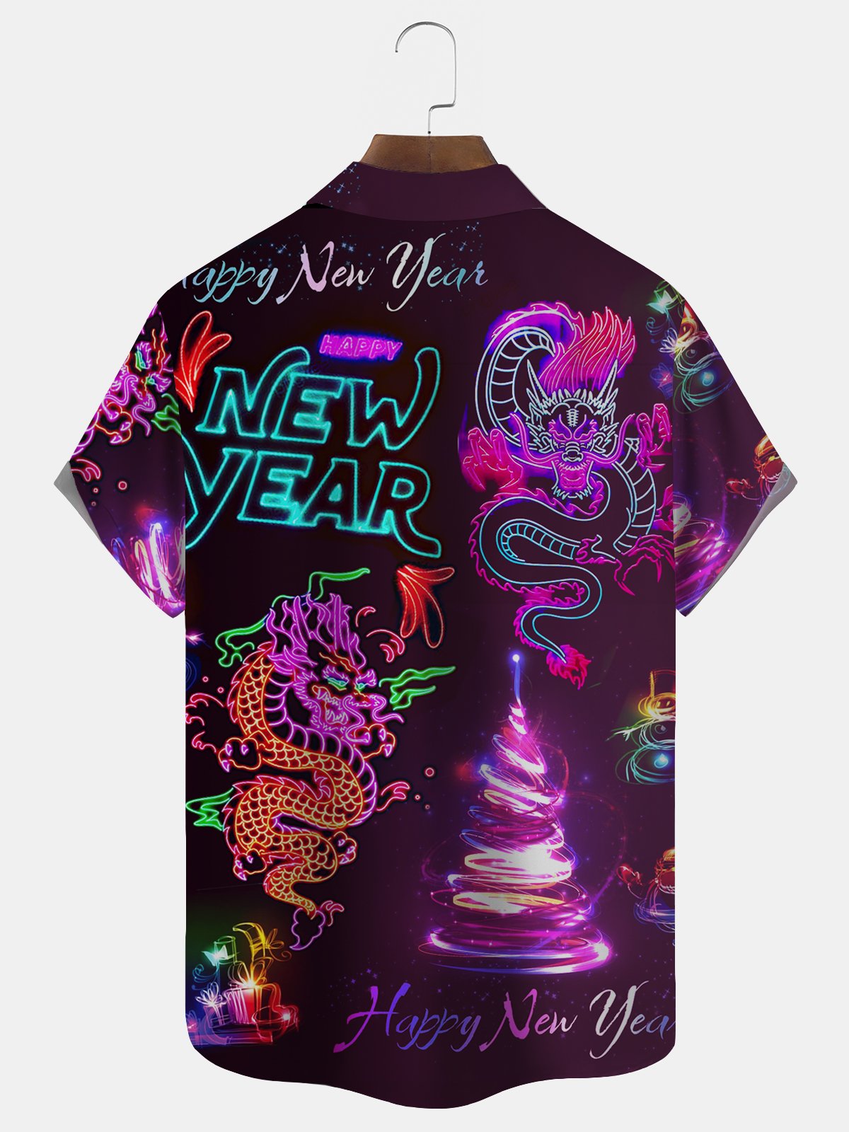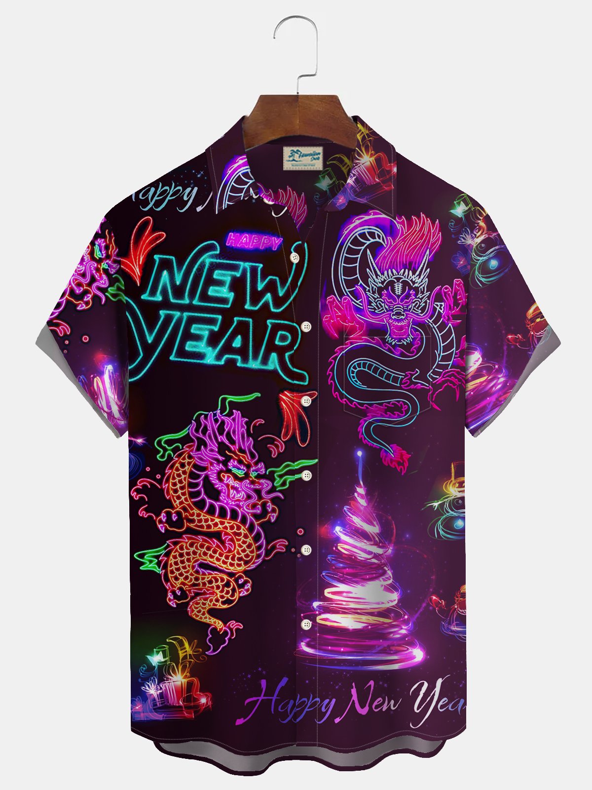 Chemise boutonnée à poche pour homme avec imprimé année du dragon Alohadaddy Nouvel An