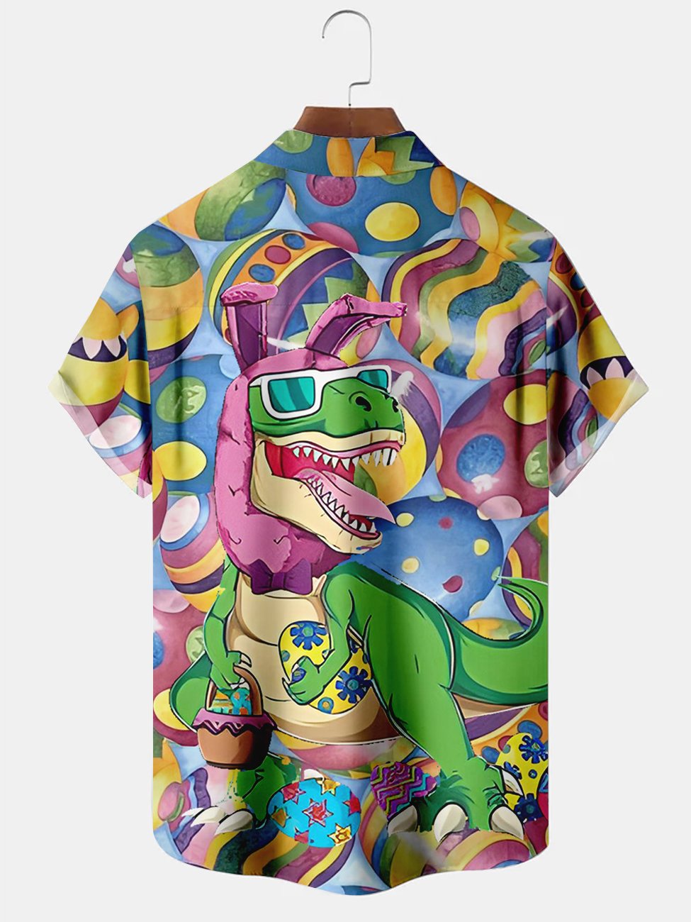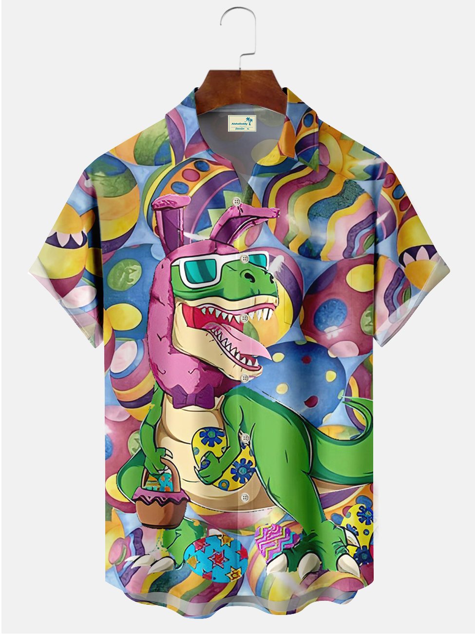Chemises décontractées grande taille à imprimé dinosaure de Pâques de Alohadaddy