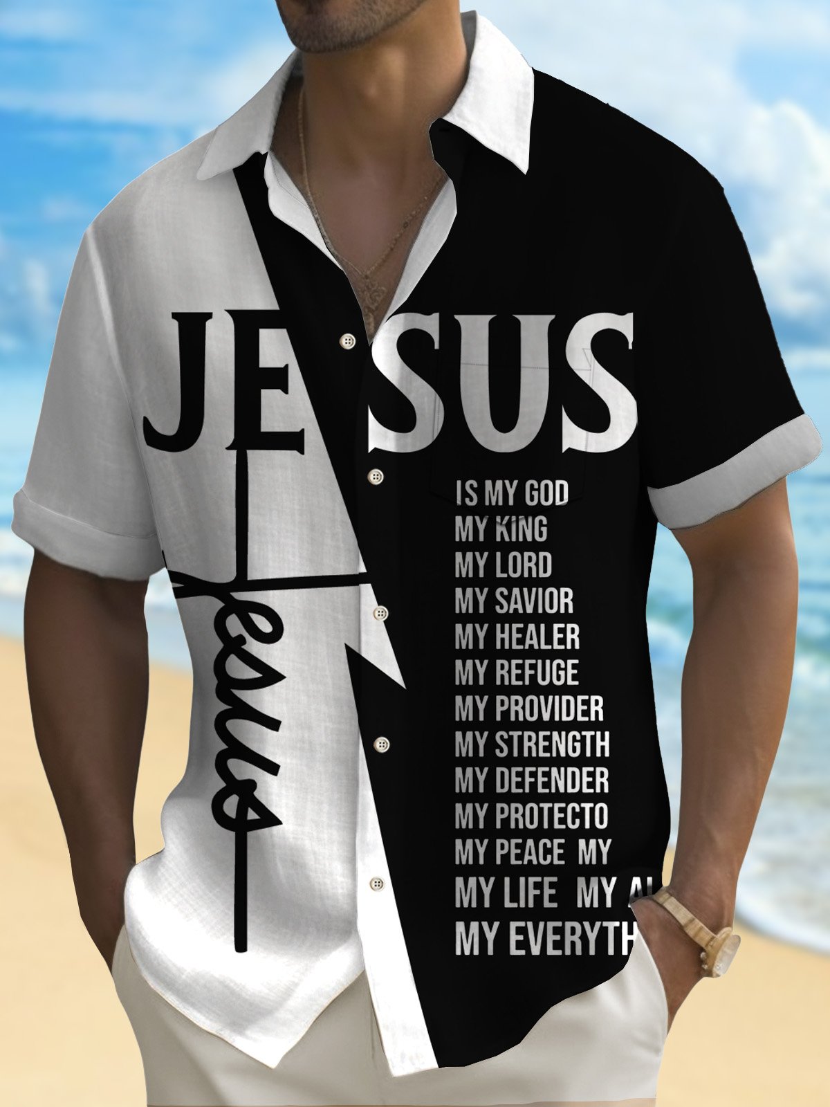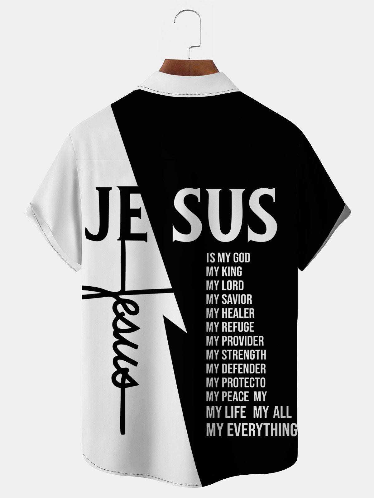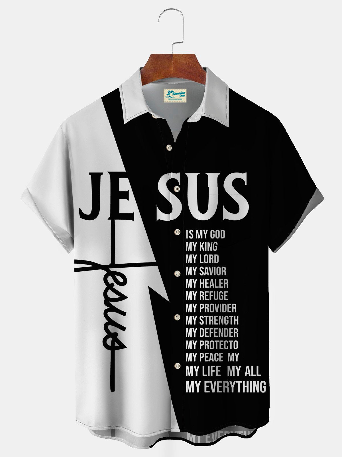 Chemise boutonnée avec poche et imprimé lettre Jésus pour homme d'Alohadaddy