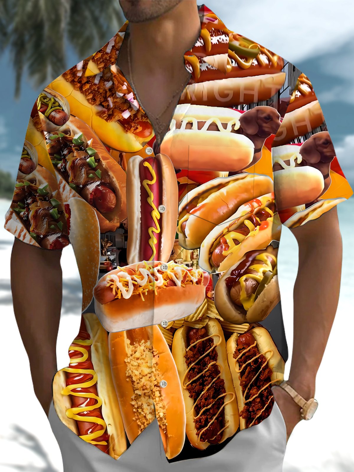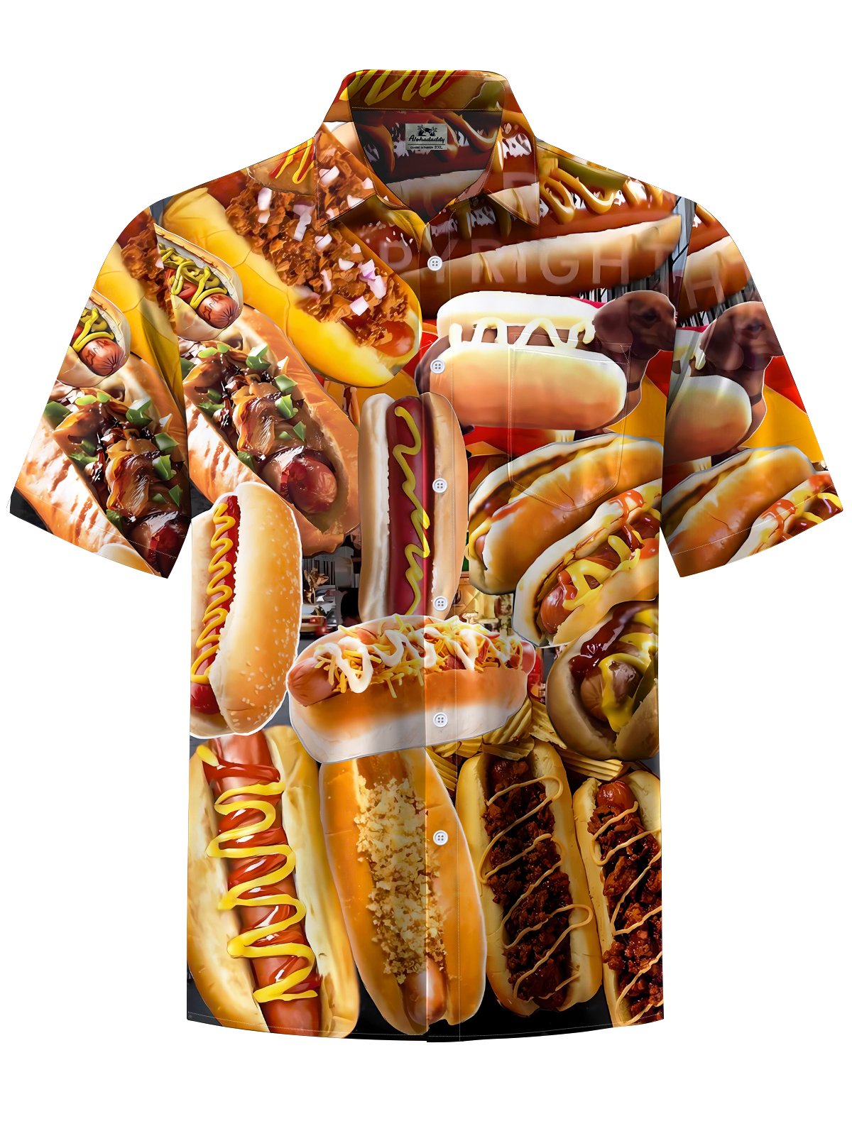 Alohadaddy® Casual Hot Dog Print Art Pocket Stretch Men's Short Sleeve Shirt Big & Tall