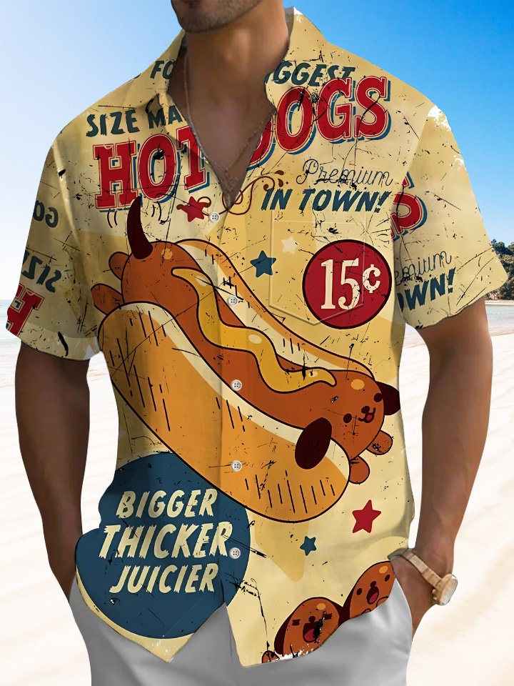 Chemise à manches courtes décontractée avec boutons et poches pour l'été et les vacances avec motif hot-dog d'Alohadaddy