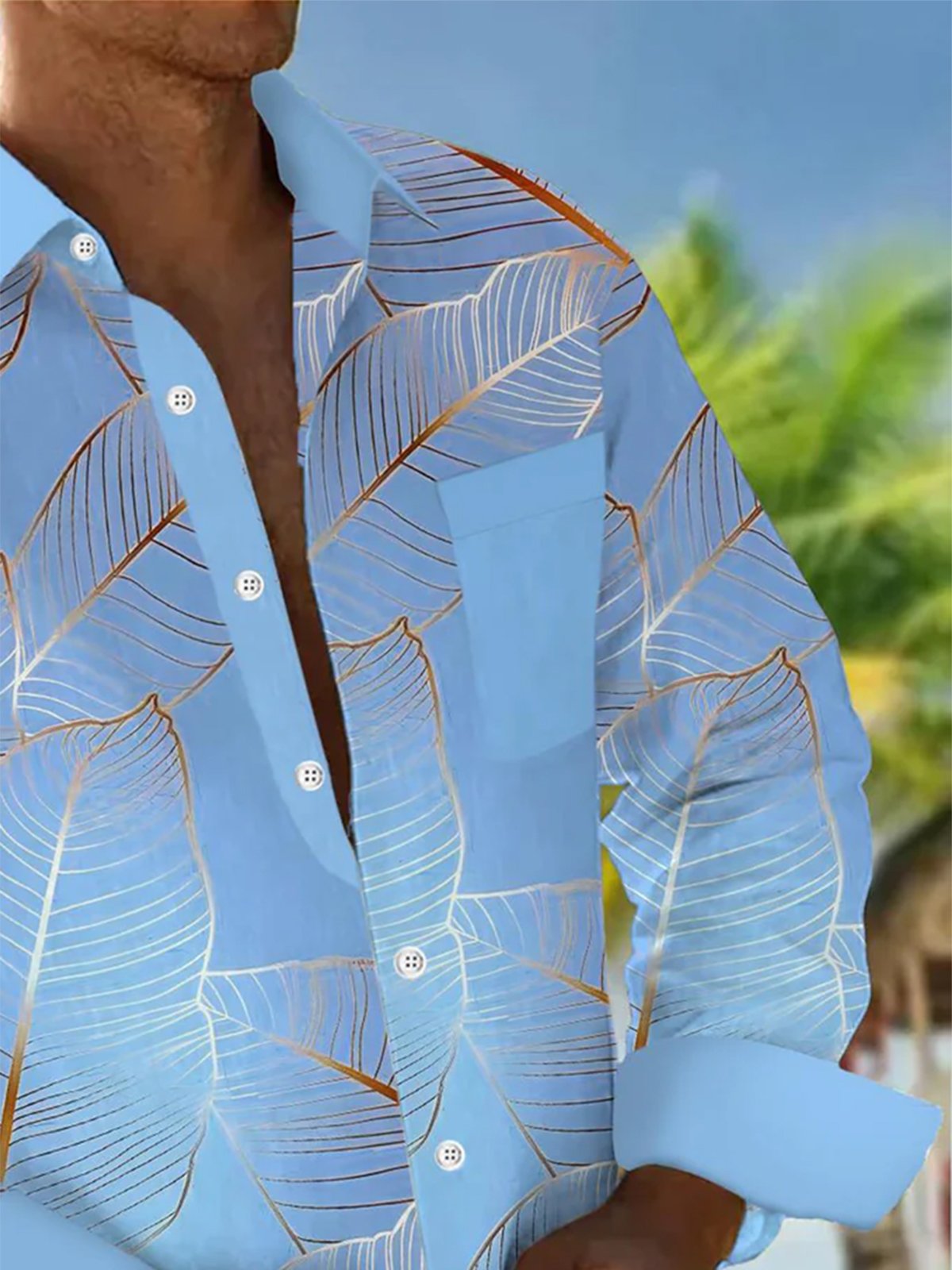 Alohadaddy® Hawaiian Leaves Art Print Chest Pocket Mens Long Sleeve Shirt Big & Tall