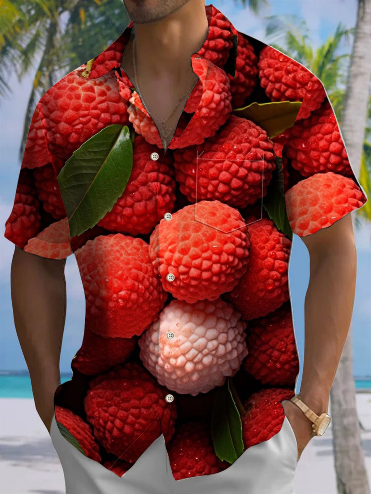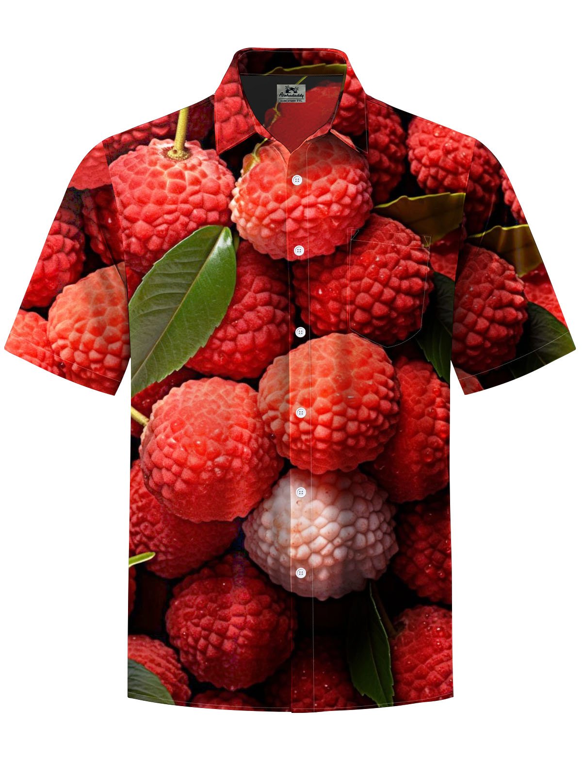 Alohadaddy® Hawaiian Lychee Print Chest Pocket Men's Short Sleeve Shirt Big & Tall