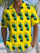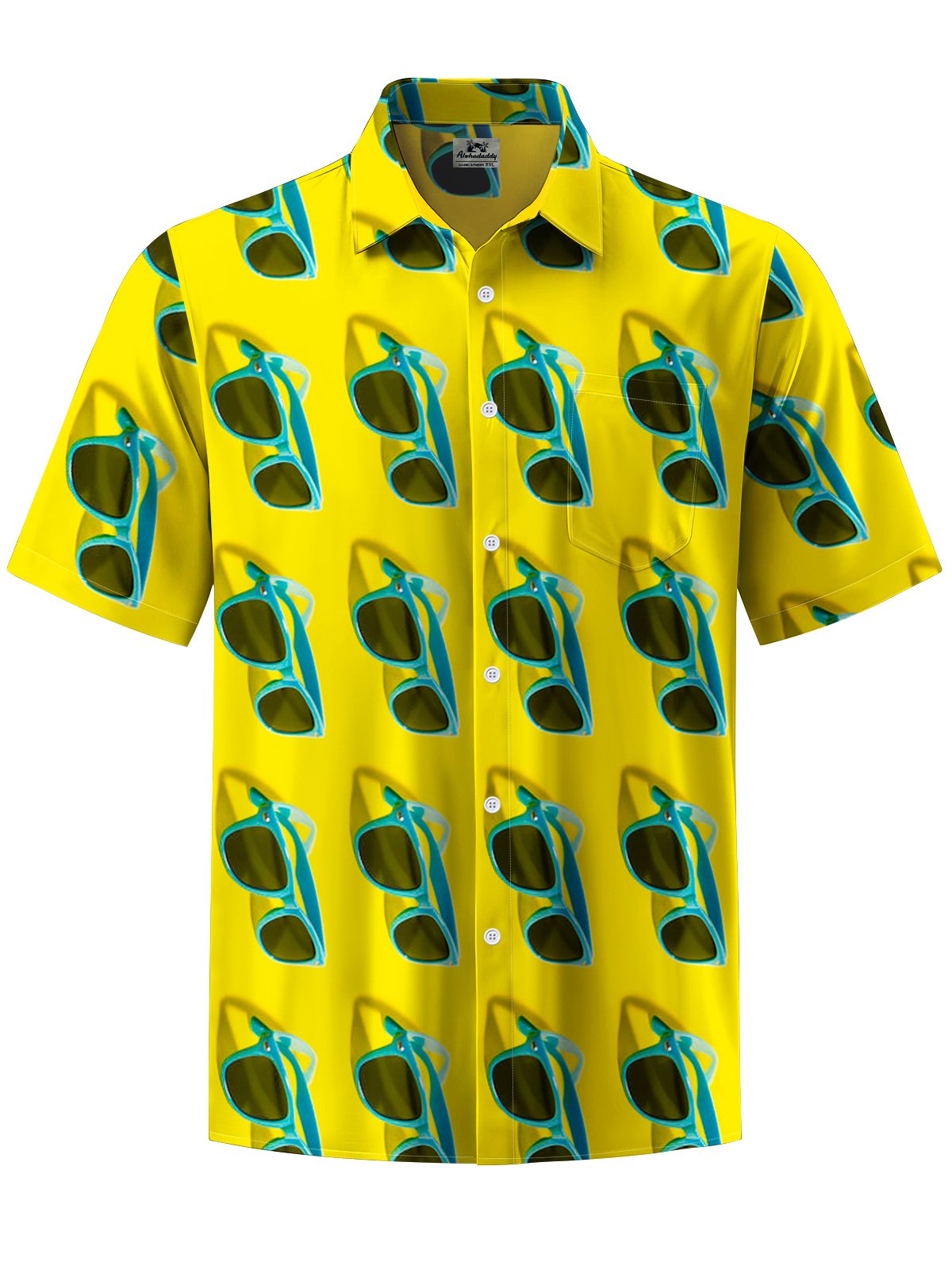 Alohadaddy® Hawaiian sunglasses with art print and chest pocket. Men's short-sleeved shirt with stretch Big & Tall