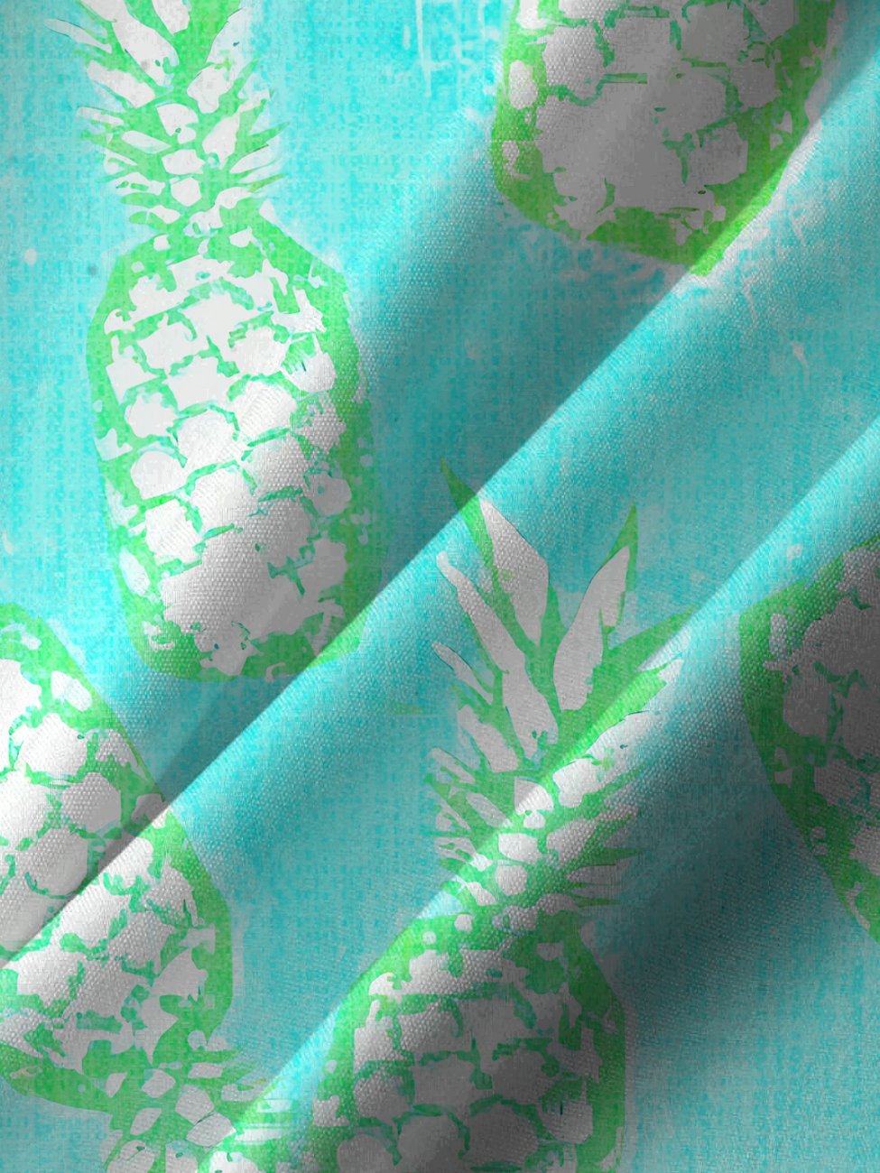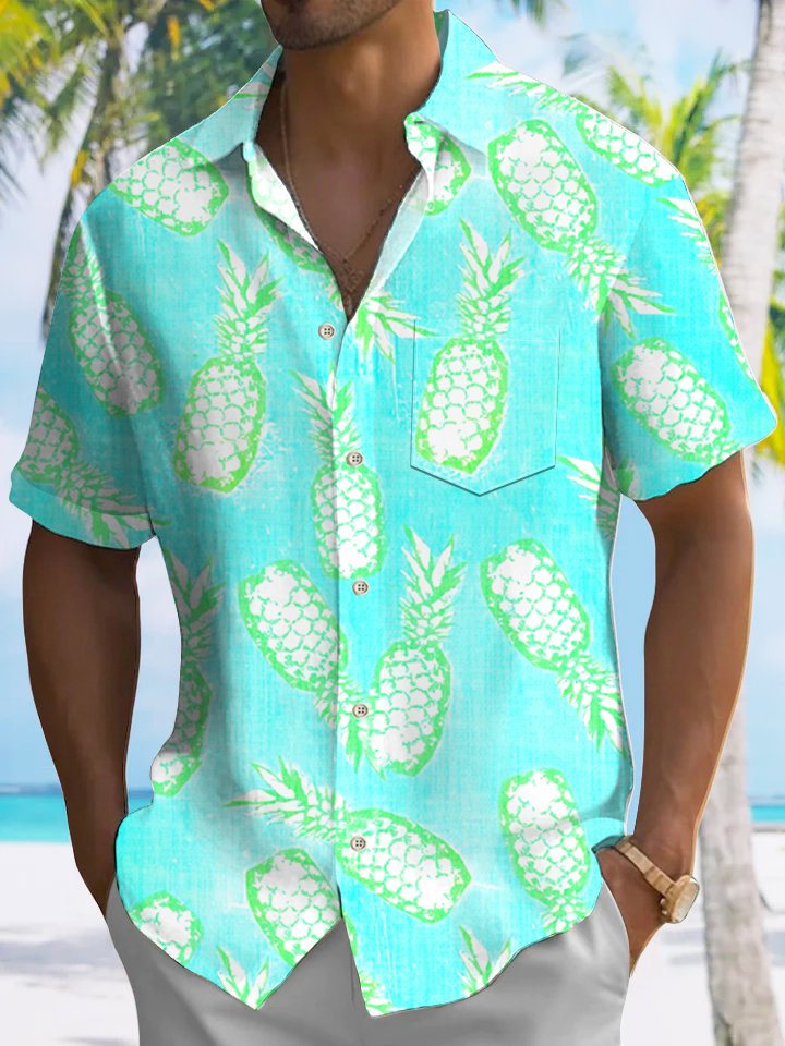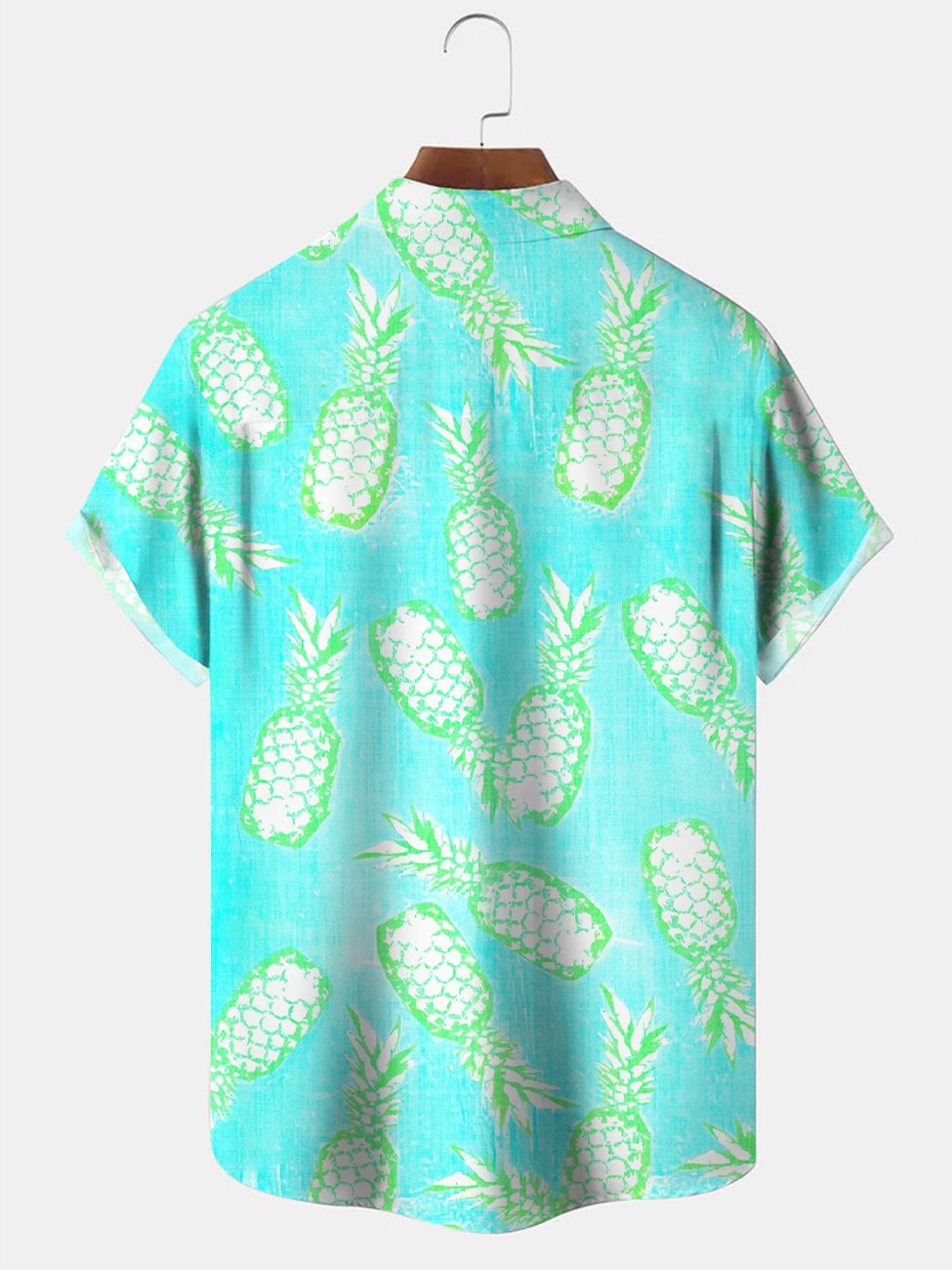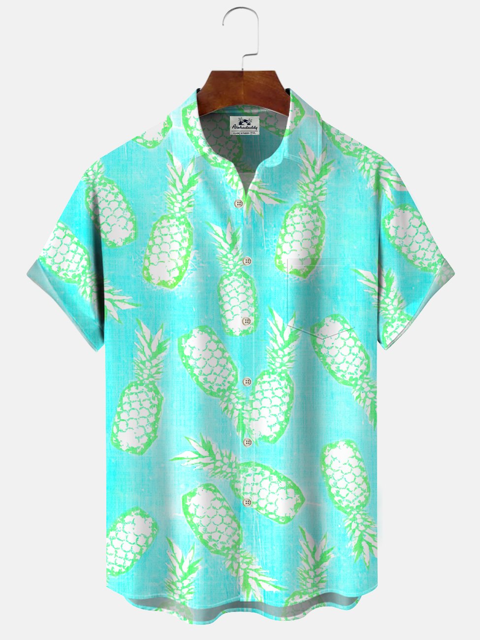 Alohadaddy Fluorescent Pineapple Button Pocket Casual Short Sleeve Shirt