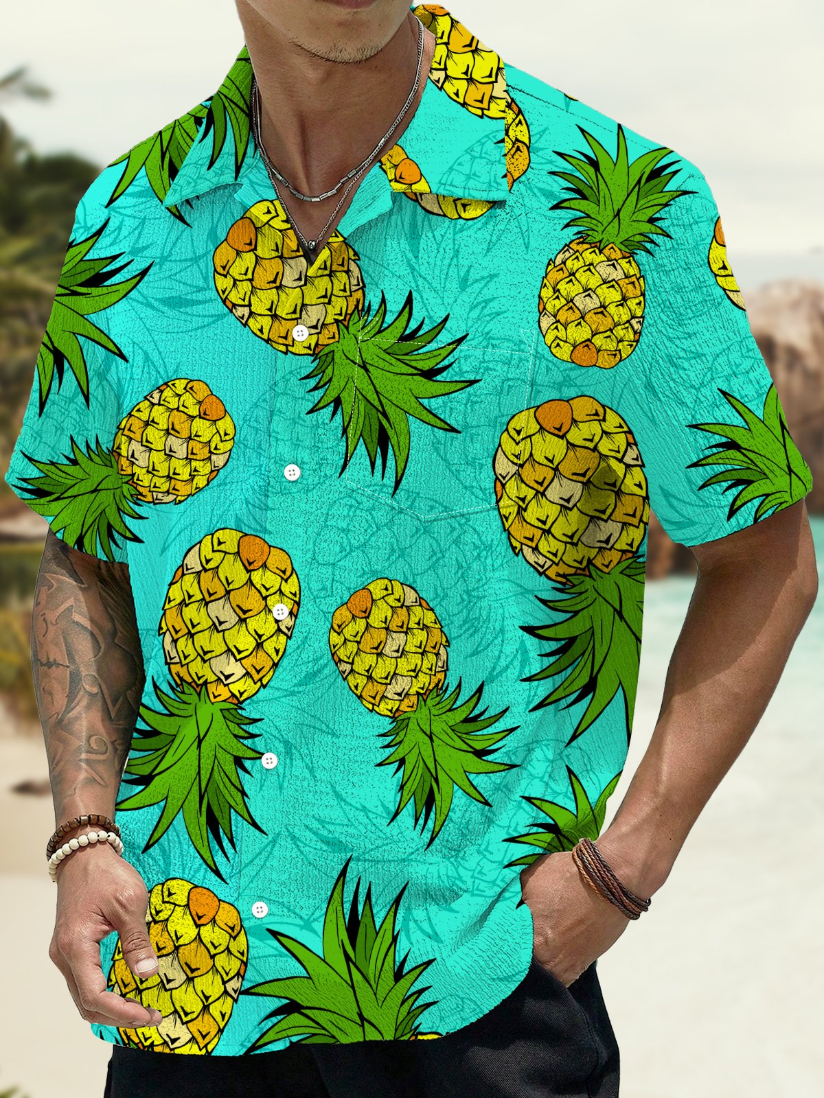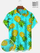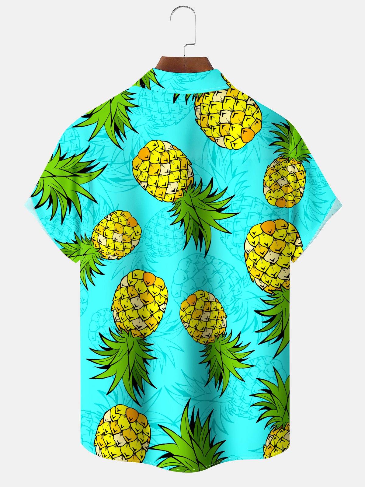 Alohadaddy Hawaiian Pineapple Art Print Cardigan Button Pockets Stretch Long Oversized Short Sleeve Shirt