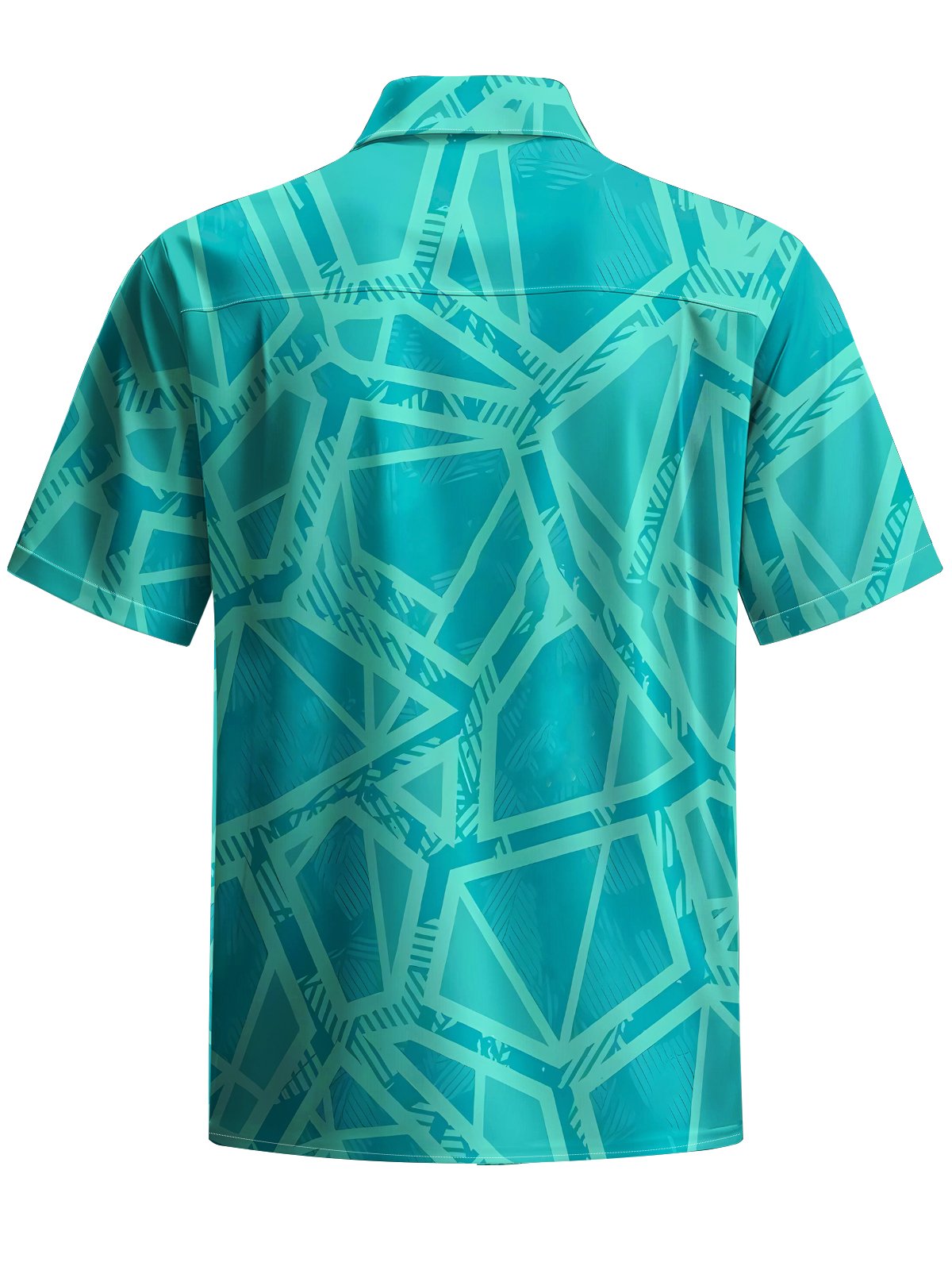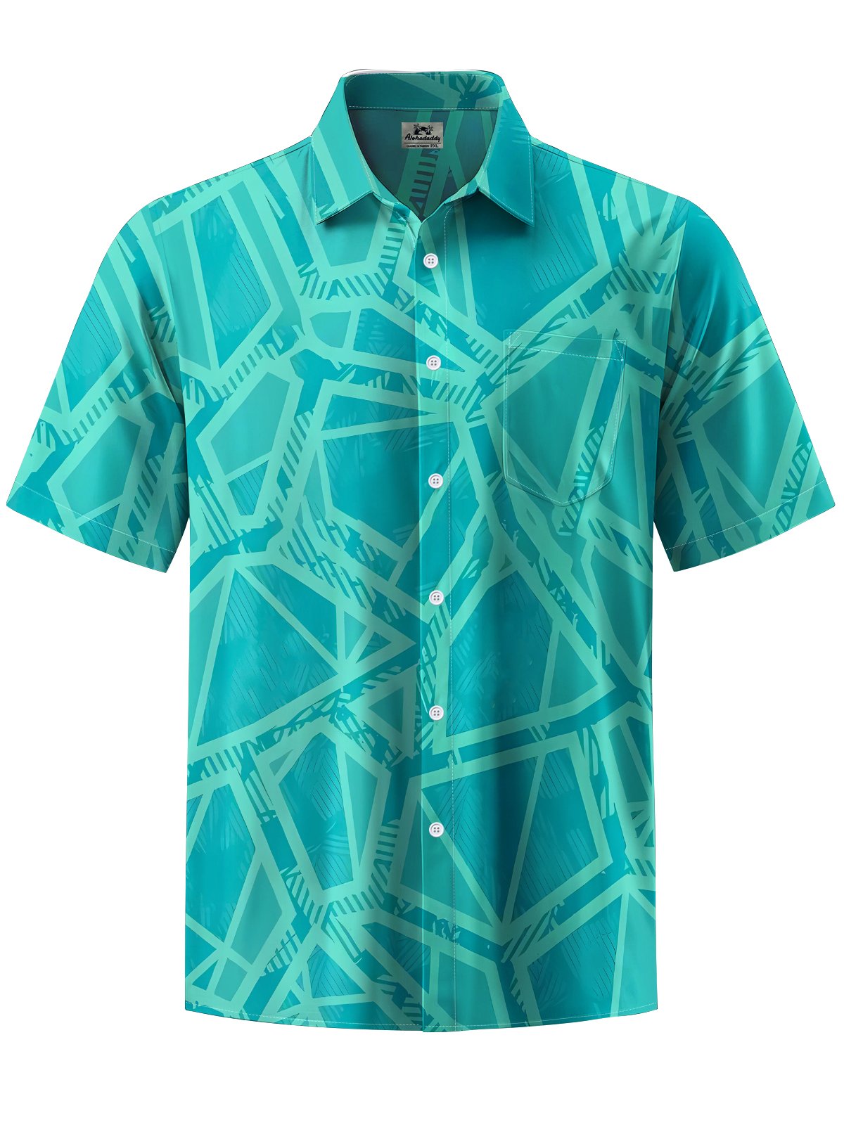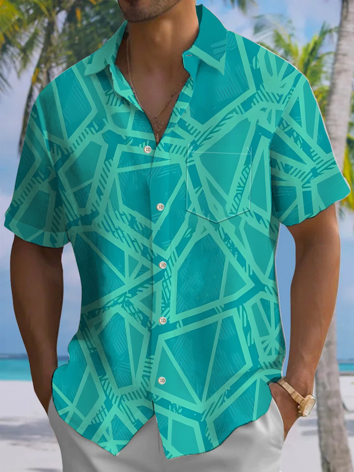 Alohadaddy® Casual Geometric Art Print Chest Pocket Men's Short Sleeve Shirt Big & Tall